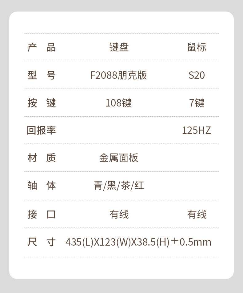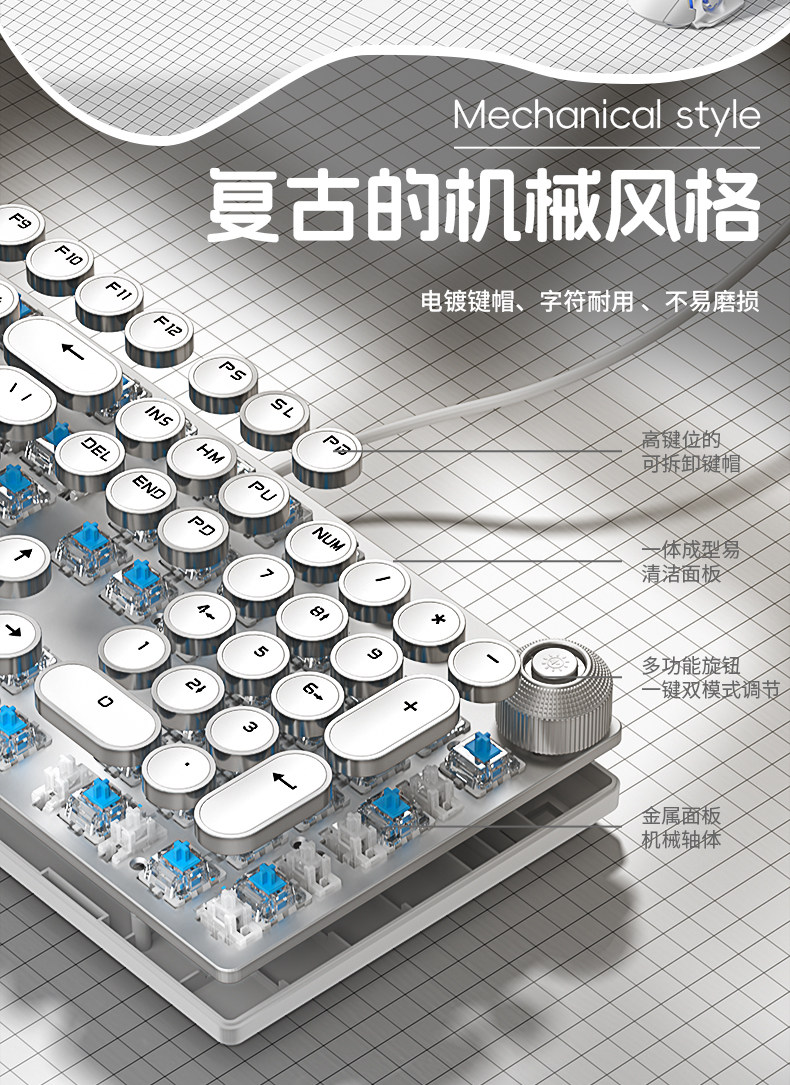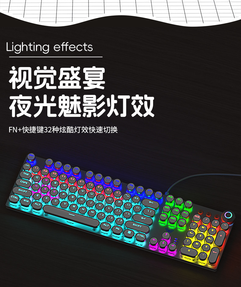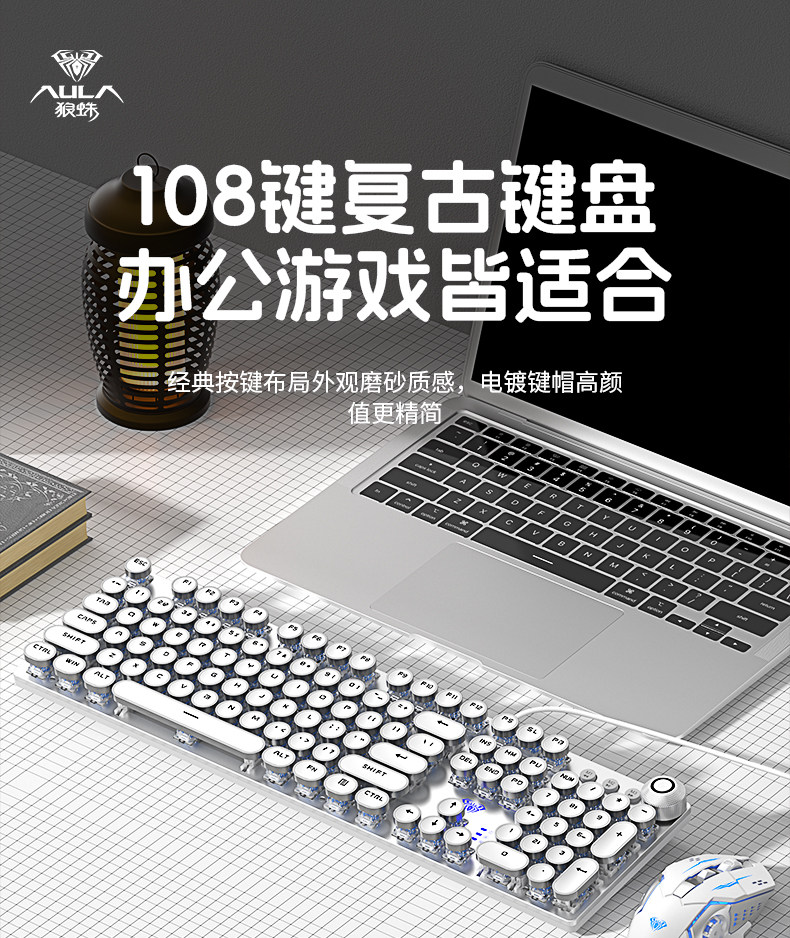 Wolf Spider 108-Key Mechanical Keyboard Punk F2088 E-Sports Game Dedicated Laptop Office Universal Electroplating