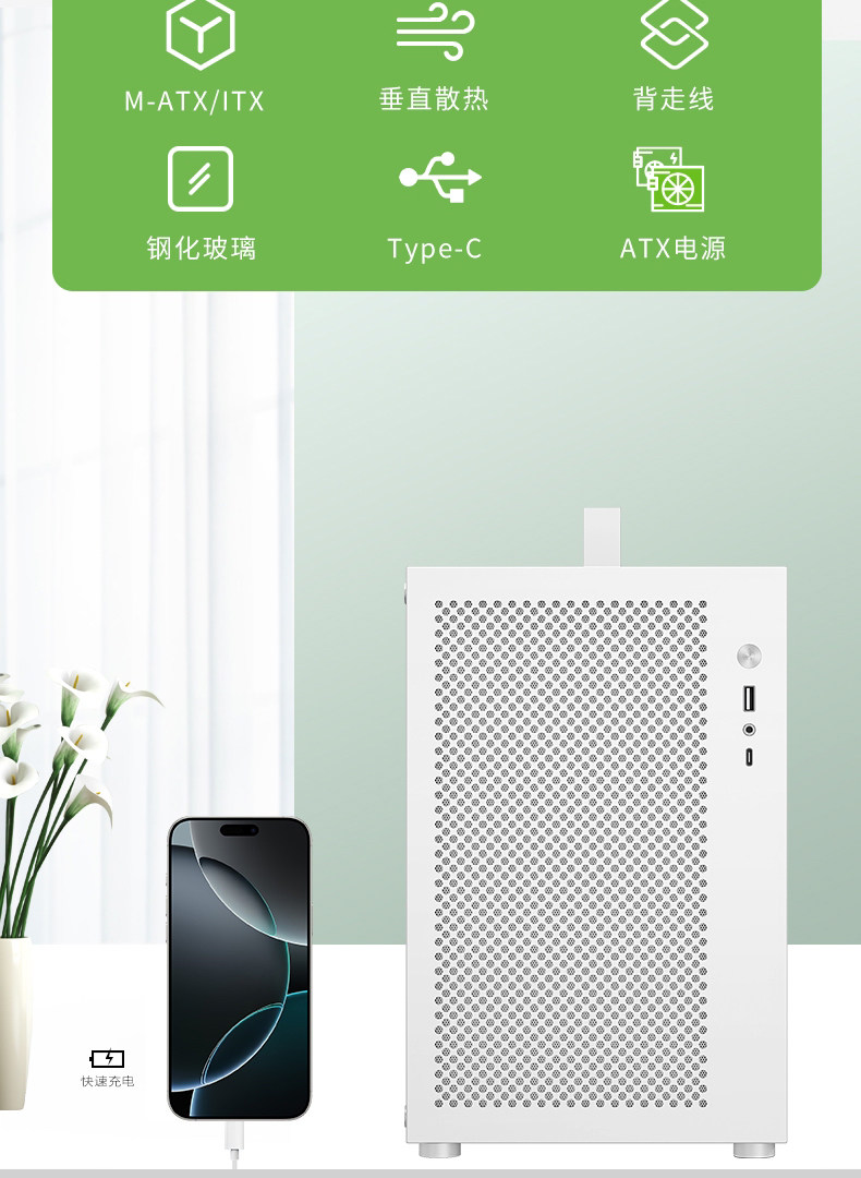 Yuqiao S5Pro Chassis Back Line Matx Motherboard White Sfx Power Supply Side Transparent Desktop Mini Itx Computer Handle