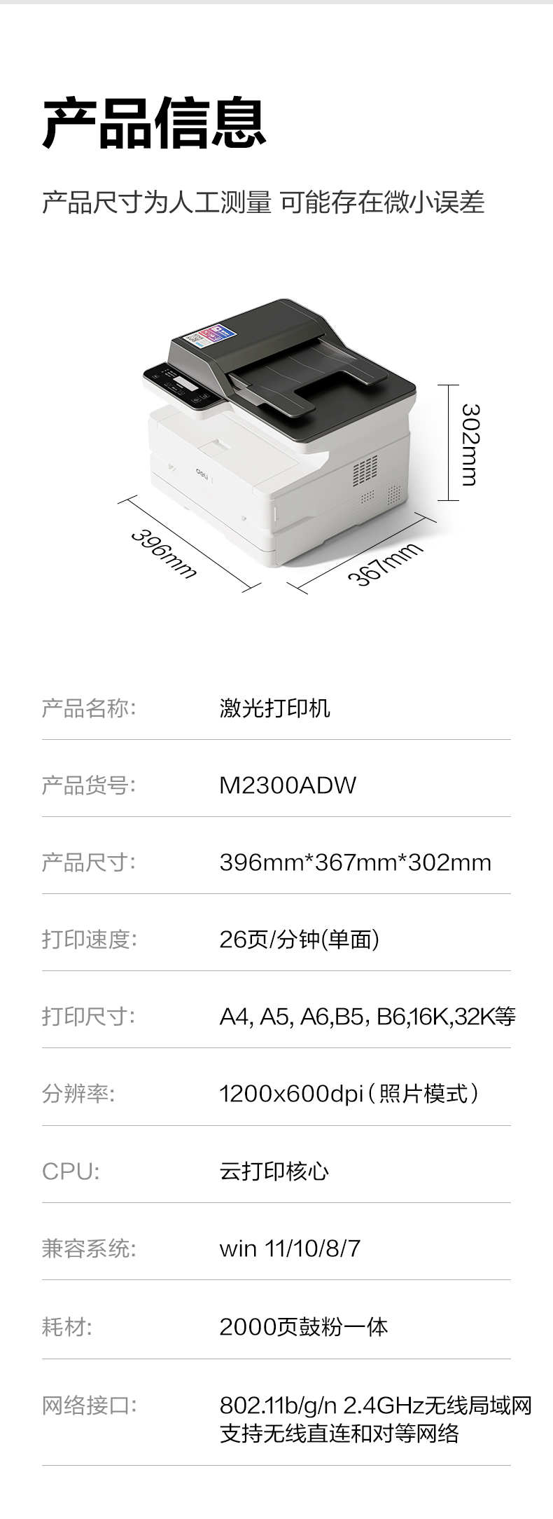 | Color Classification | M2000Dw [Basic Office Model] 25 Pages/Minute - Shared Wireless Printing - Printing, Copying and Scanning - Automatic Two-Sided,M2300Adw [Office Upgrade Model-With Document Feeder] 26 Pages/Minute-Automatic Copying and Scanning-Bluetooth Distribution Network-Remote Printing,M2500Adw [High-Speed Office Model-With Document Feeder] 28 Pages/Minute-Automatic Copying and Scanning-Bluetooth Distribution Network-Remote Printing |