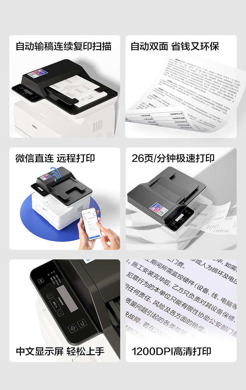 [Recommended for Corporate Purchases] Deli Black and White Laser Printer for Office Use, Small Automatic Scanning, Copying, and Printing All-In-One Machine, Wireless Remote Mobile Office Commercial Multifunction Printer