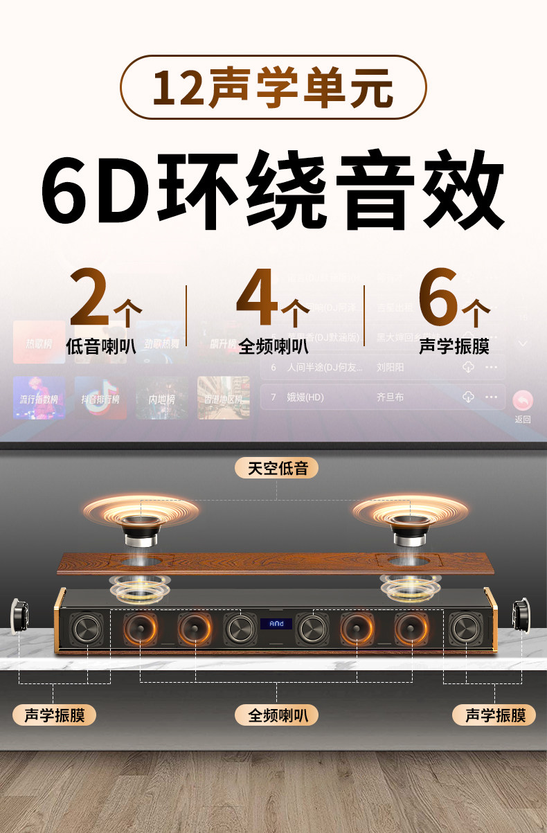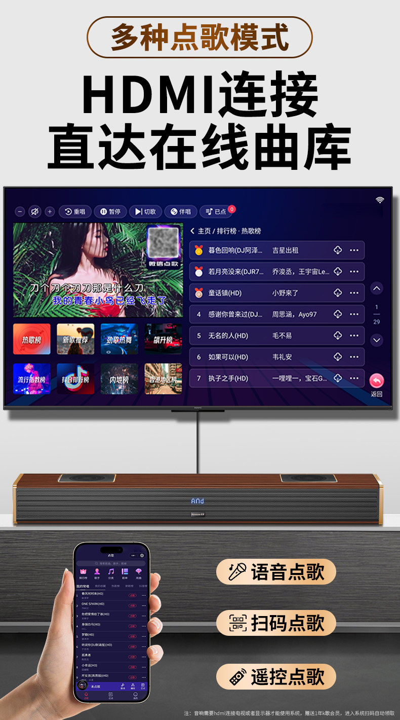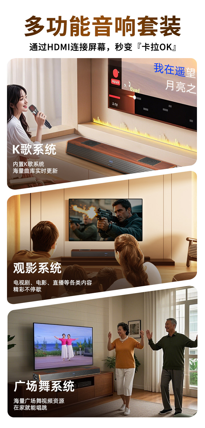 | Color Classification | 120W High-Power Soundbar with Built-In Karaoke & Movie System, Voice/Phone Song Requests, 12-Unit Acoustic Configuration, and Immersive Deep Bass. Supports Bluetooth 5.0, Hdmi, Aux, and Optical Connections for a Home Theater Experience. Connects to Projectors and Tvs,[Add to Favorites and Purchase] Shipped |