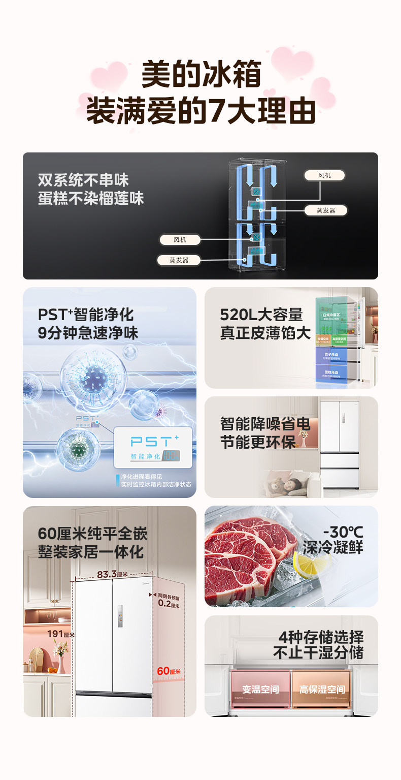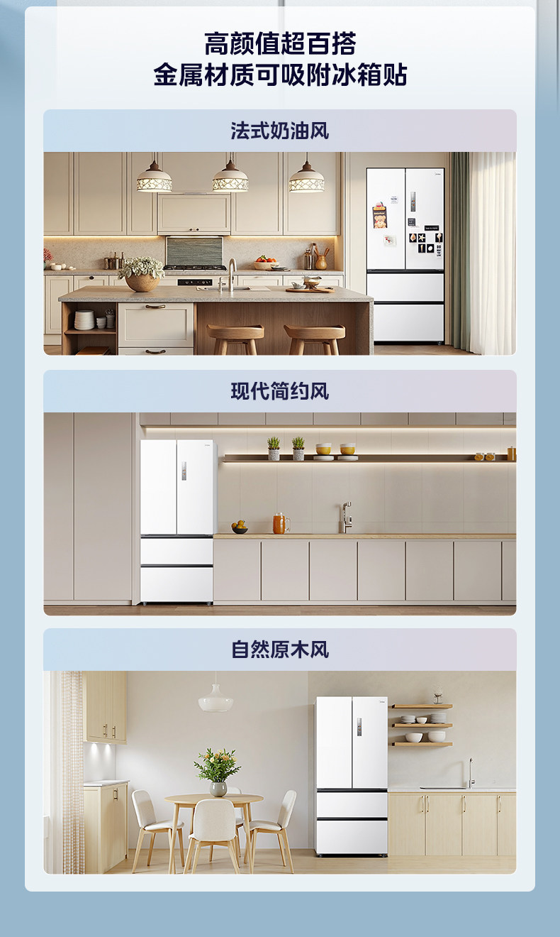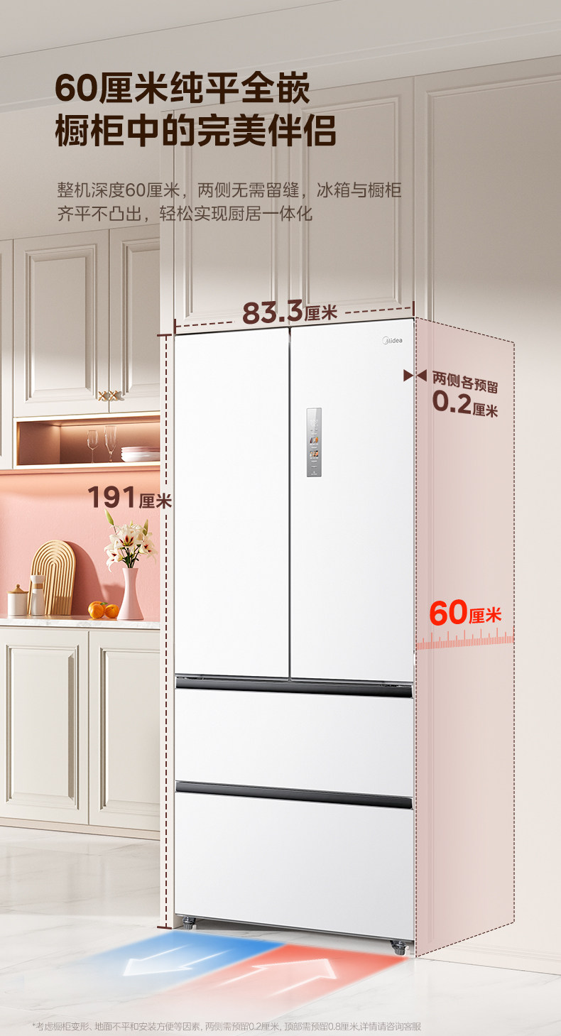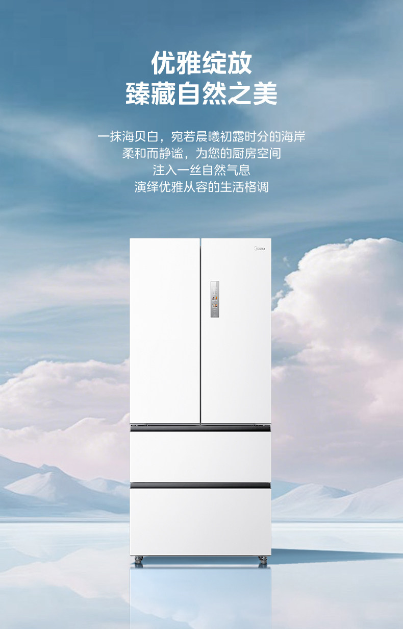 Dual System | Midea M60 Little King 520 Ultra-Thin Zero-Embedded Refrigerator for Home Use, French Style Multi-Door Four-Door Double Open