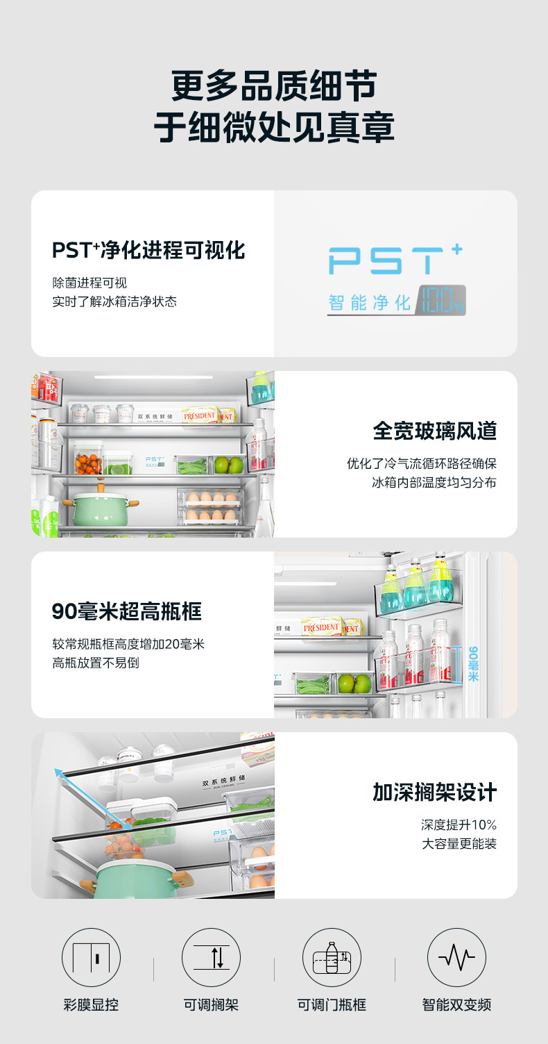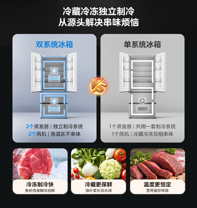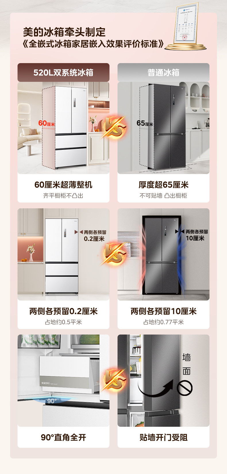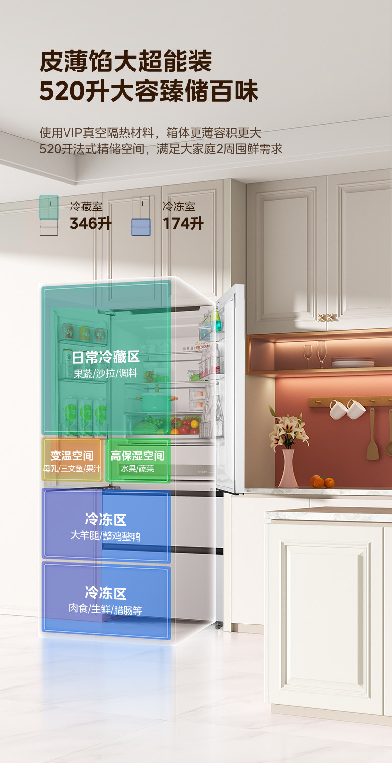 Dual System | Midea M60 Little King 520 Ultra-Thin Zero-Embedded Refrigerator for Home Use, French Style Multi-Door Four-Door Double Open