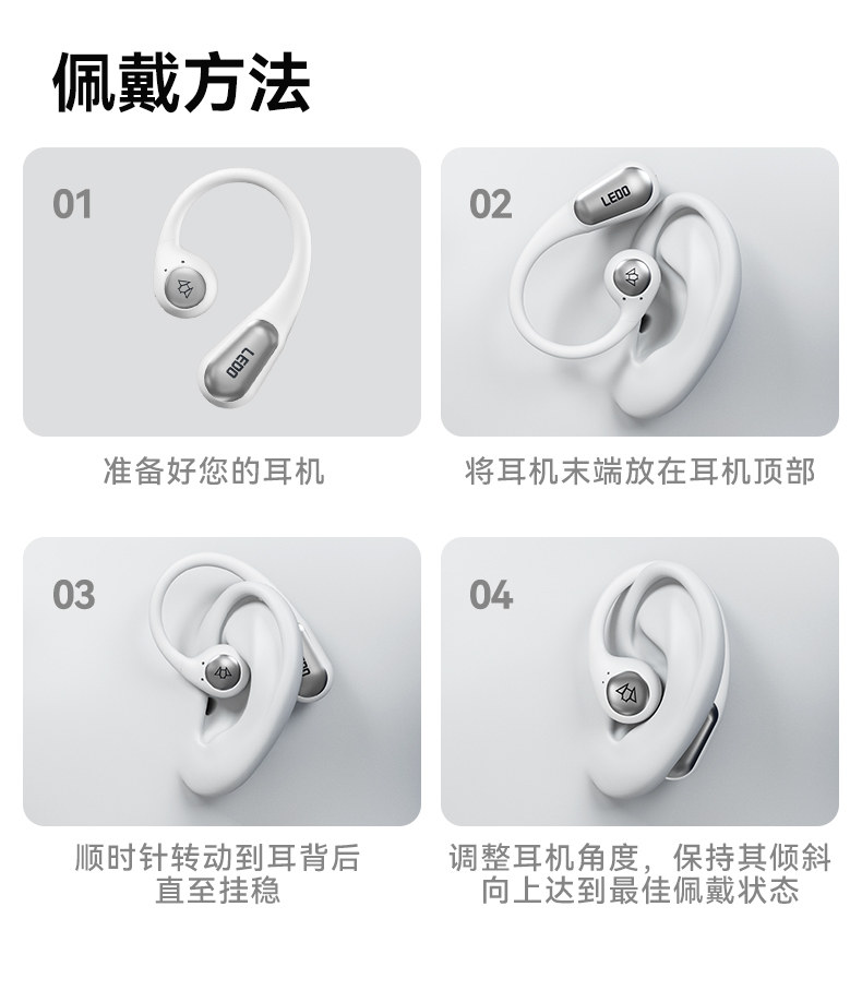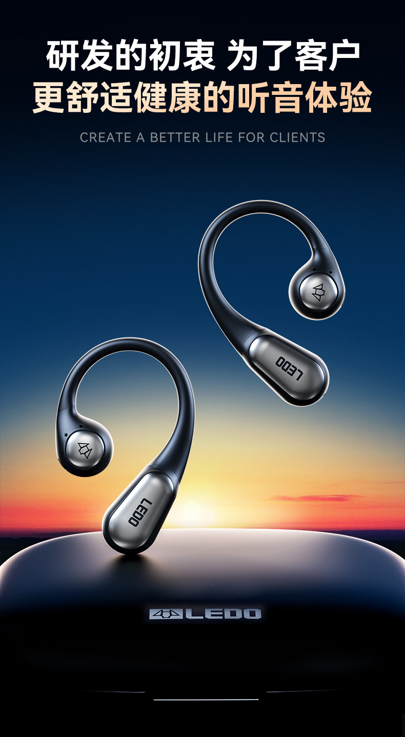 Leduo Bluetooth Earphones Wireless Over-Ear 2025 New Model Bone Conduction Open-Type Non-In-Ear Sports Official Genuine Product