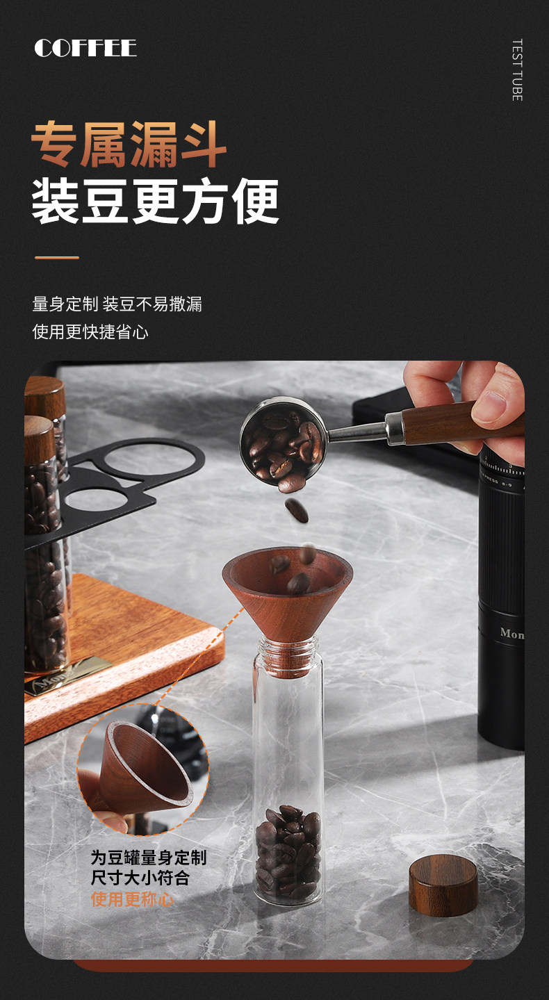 | Color Classification | Coffee Bean Storage Rack 8 Pieces - Free Solid Wood Funnel,Coffee Bean Storage Rack 8 Pieces - Free Solid Wood Funnel + Walnut Measuring Spoon,Coffee Bean Storage Rack 8-Pack - Includes Solid Wood Funnel + Walnut Wood Weighing Tray |