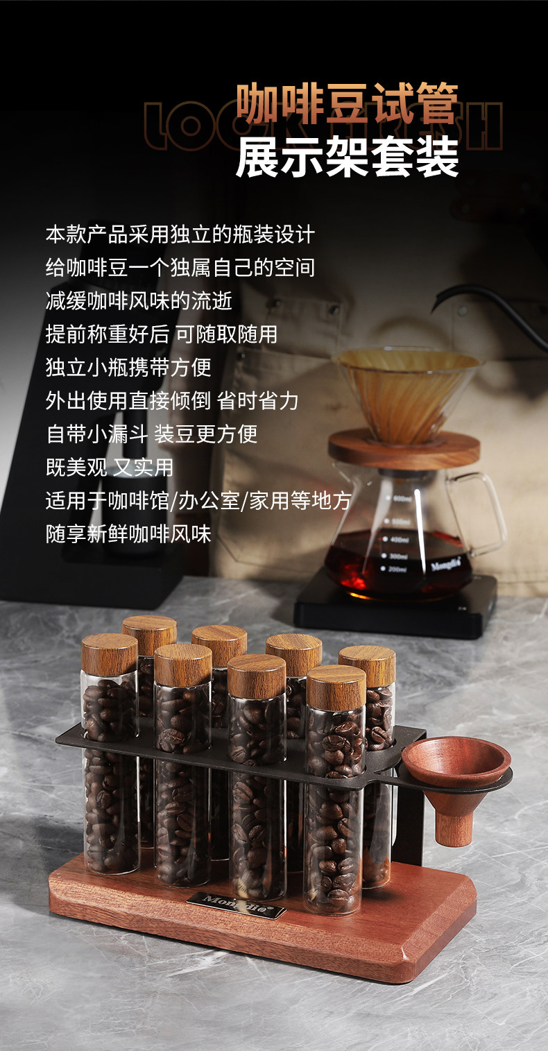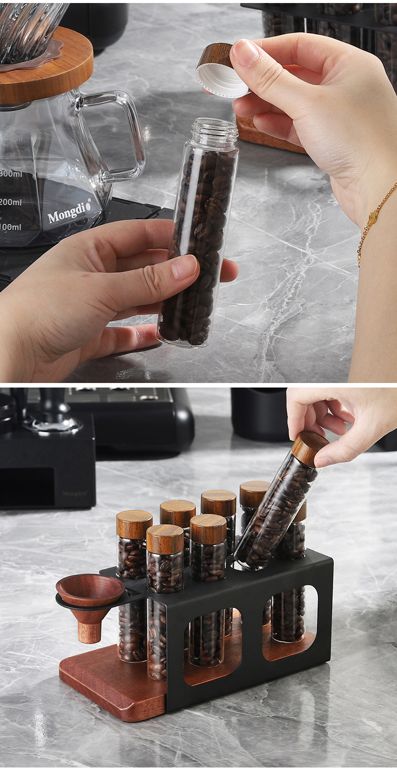 Mongdio Coffee Bean Sealed Jar Display Rack Glass Storage Jar Coffee Bean Sealed Tube Sealed Bottle Dispensing Tube