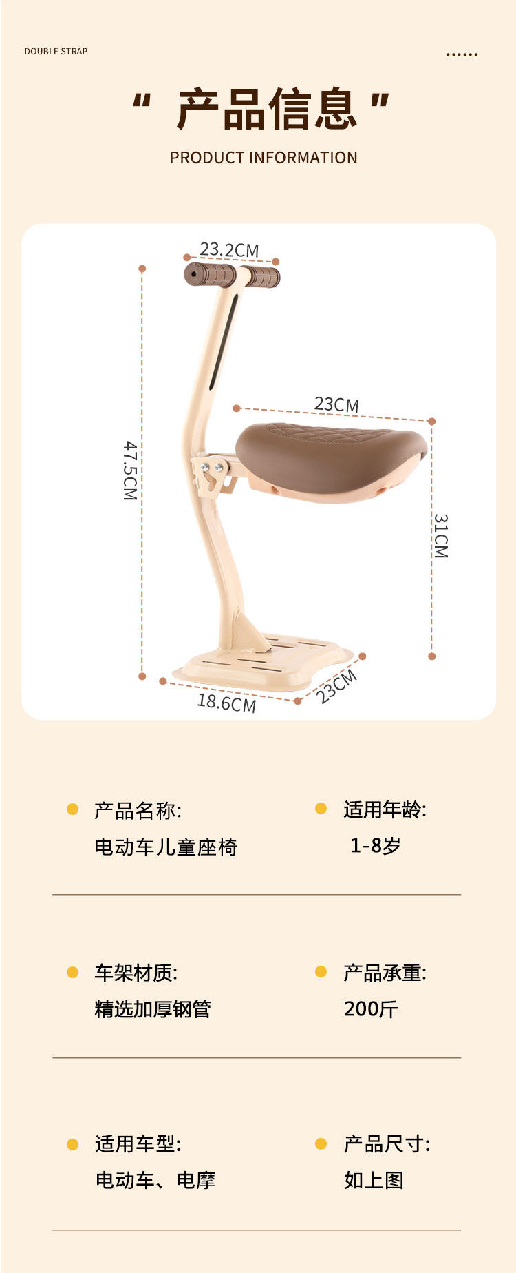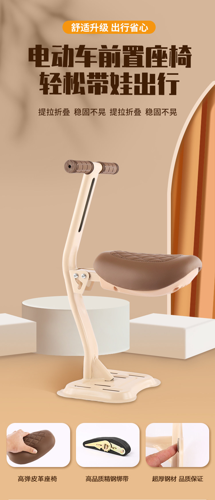 Electric Vehicle Child Seat, Front-Mounted Battery Car Baby Safety Seat, Foldable Child Electric Vehicle Front Stool