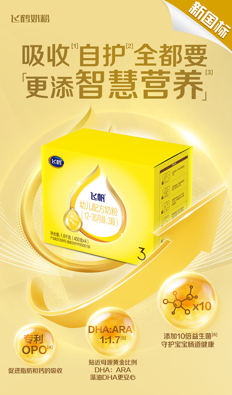 Selected Special Offer]Feihe Feifan Stage 3 Four-Pack 400g*4 Consecutive Packs 1600g Box Stage 3 Infant Formula Milk Powder