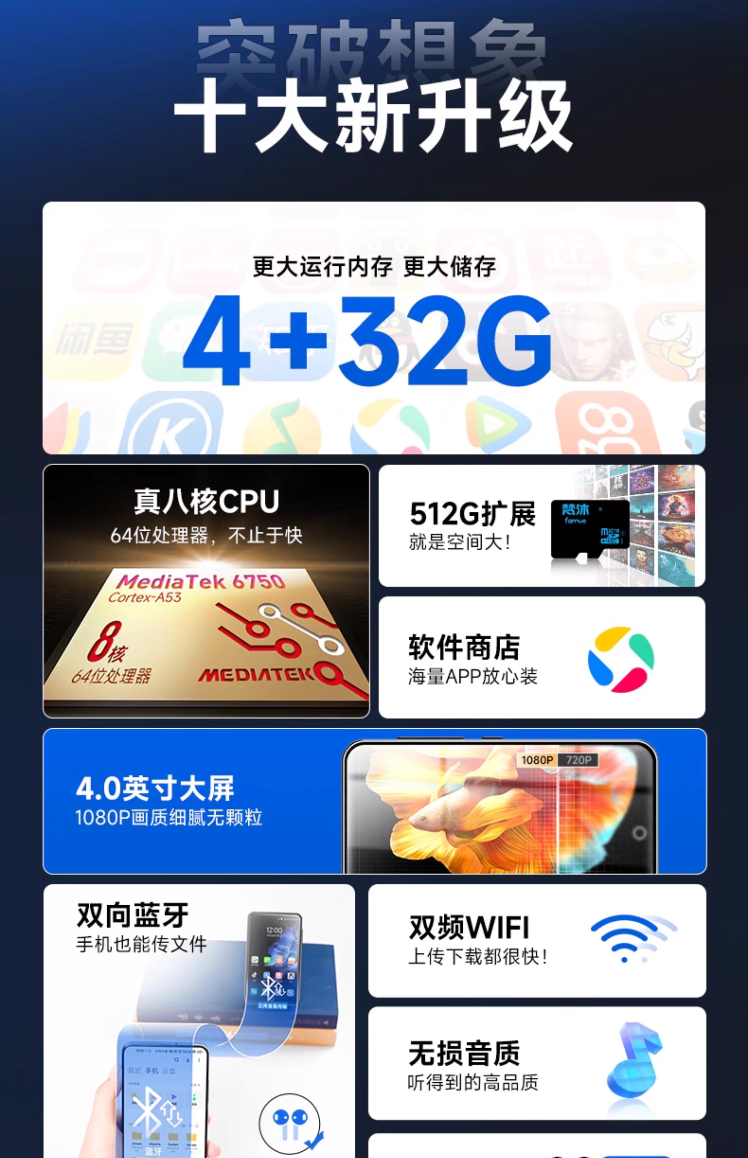 Fanmu Mp4Wifi Can Access the Internet, Mp5 Portable Music Player, P4 for Listening to Music, Reading Novels, Watching Videos, and Playing Music