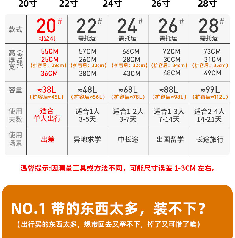 | Size | 20inch Can Board[Expandable + Double-Layer Explosion-Proof Zipper + Cup Holder + Hook],22inch Large Deep Warehouse[Expandable + Double-Layer Explosion-Proof Zipper + Cup Holder + Hook],24inch Large Deep Warehouse[Expandable + Double-Layer Explosion-Proof Zipper + Cup Holder + Hook],26inch Large Deep Warehouse[Expandable + Double-Layer Explosion-Proof Zipper + Cup Holder + Hook],28inch Large Deep Warehouse[Expandable + Double-Layer Explosion-Proof Zipper + Cup Holder + Hook] |