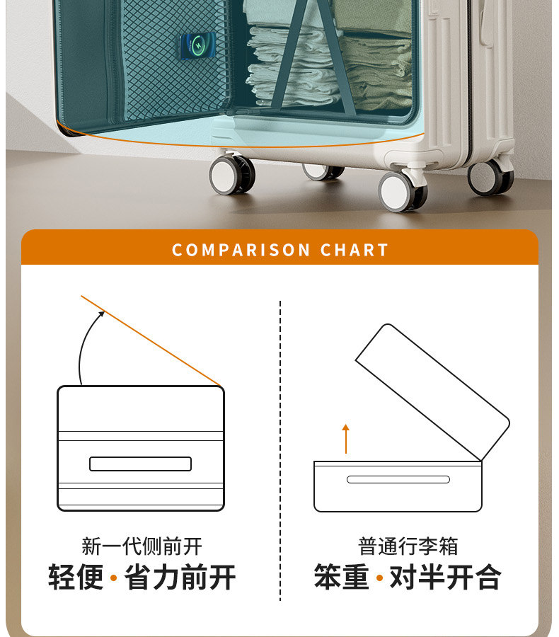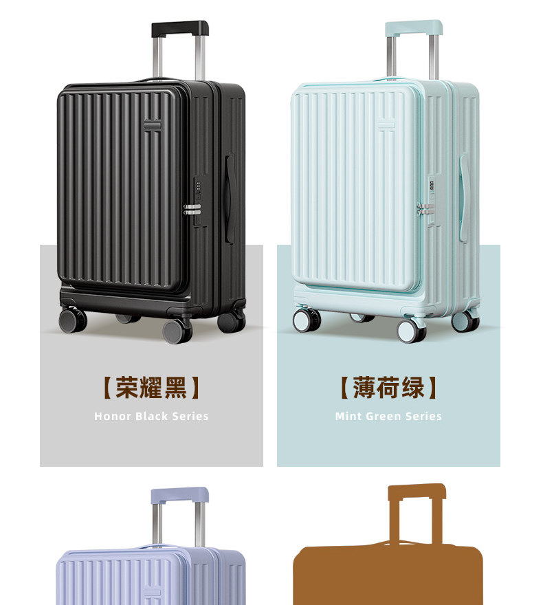 Side-Opening Suitcase 2025 New Model for Women, 20-Inch, 24-Inch, Carry-On Travel Trolley, Password Lock Leather Suitcase, Large Capacity 28-Inch