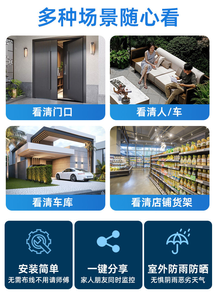 | Applicable Scenarios | Pet Care,Examination Room Monitoring,Indoor,Nanny or Caregiver Monitoring,Caring for the Elderly and Children,Door and Corridor Monitoring,Outdoor |