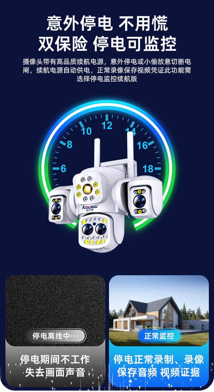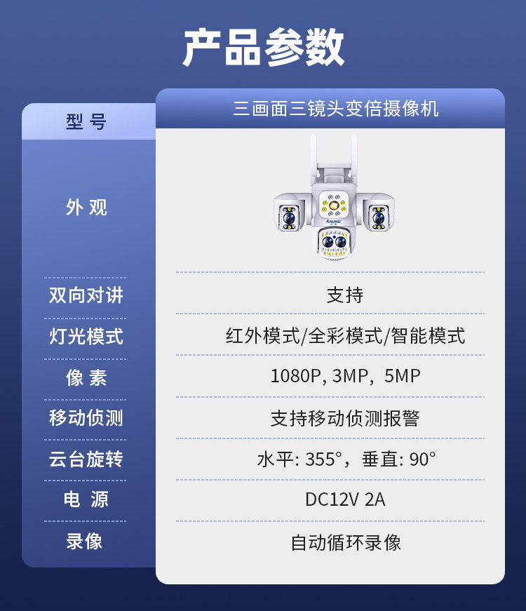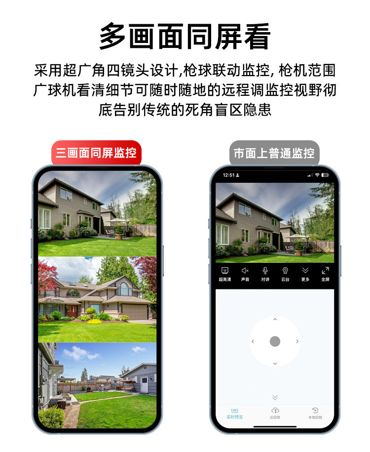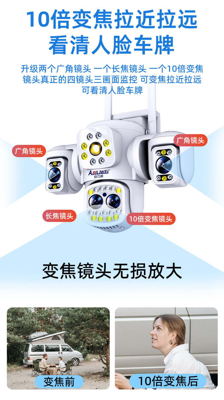 | Color Classification | Ultra-Clear Three-Lens [Wifi/Network Cable Dual-Use] Real-Time Wide Angle,3-Lens, 3-View Monitor: [Wi-Fi/Ethernet Dual-Use] Real-Time Wide Angle + Free Playback,3-Lens, 3-View Monitor [Wifi/Ethernet Dual-Use] - Power Outage Backup + Real-Time Wide Angle + Free Playback,4-Lens, 3-View Monitor [4g Data-Free - Includes Permanent Data Plan] Real-Time Wide Angle + 10X Zoom + 100m License Plate Recognition + Free Playback,4-Lens, 3-View Monitor [4g Data-Free - Includes Permanent Data Plan] Power Outage Backup + Real-Time Wide Angle + 10X Zoom + 100m License Plate Recognition + Free Playback |