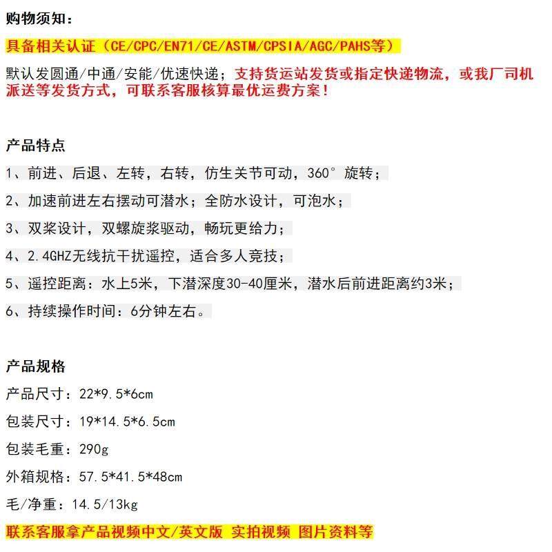 | Color Classification | [English Packaging]2.4g Remote Control Diving Shark |