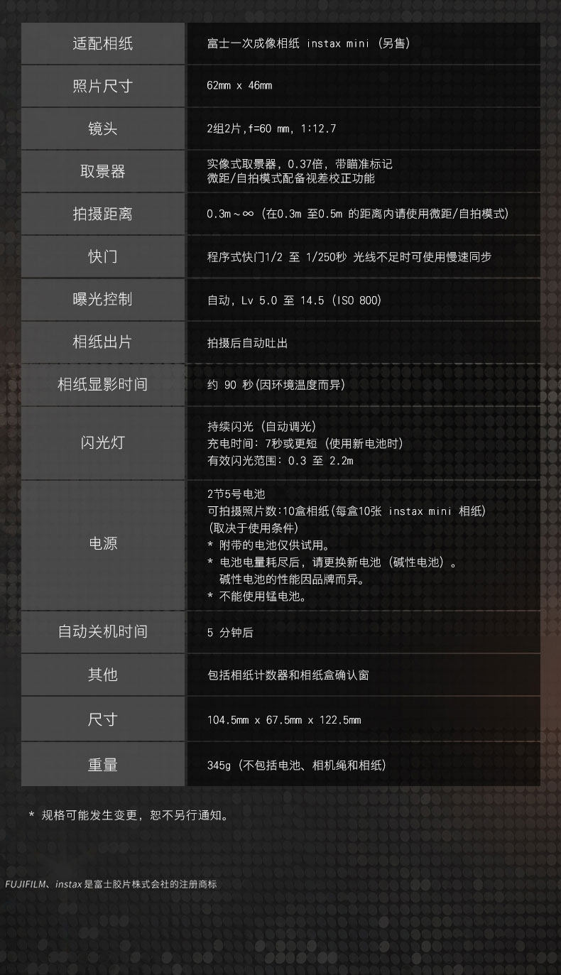 | Model | Instax Mini 41™Authorized Design: Timeless Modern Glamour |
