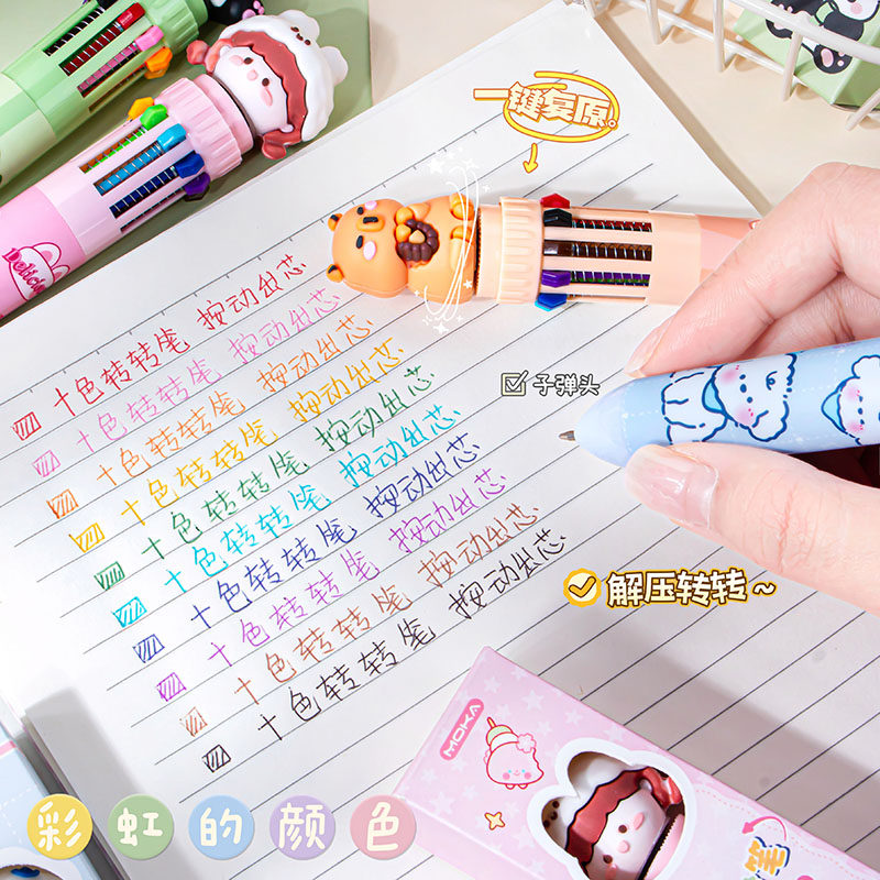 Ten-Color Ballpoint Pen, Multi-Color in One Marker Pen, Press-Type Student Marker Pen, Children's Reward Gift Wholesale