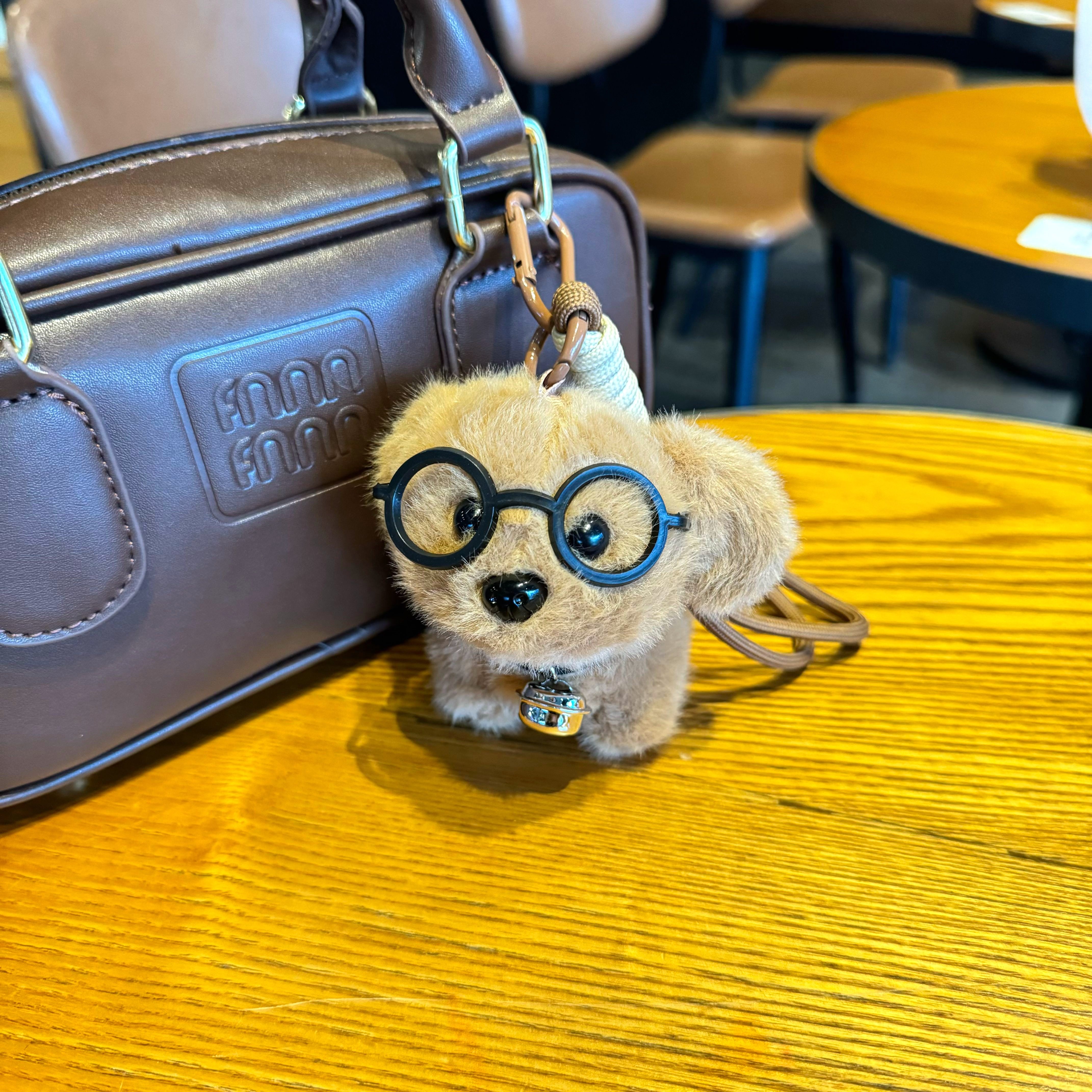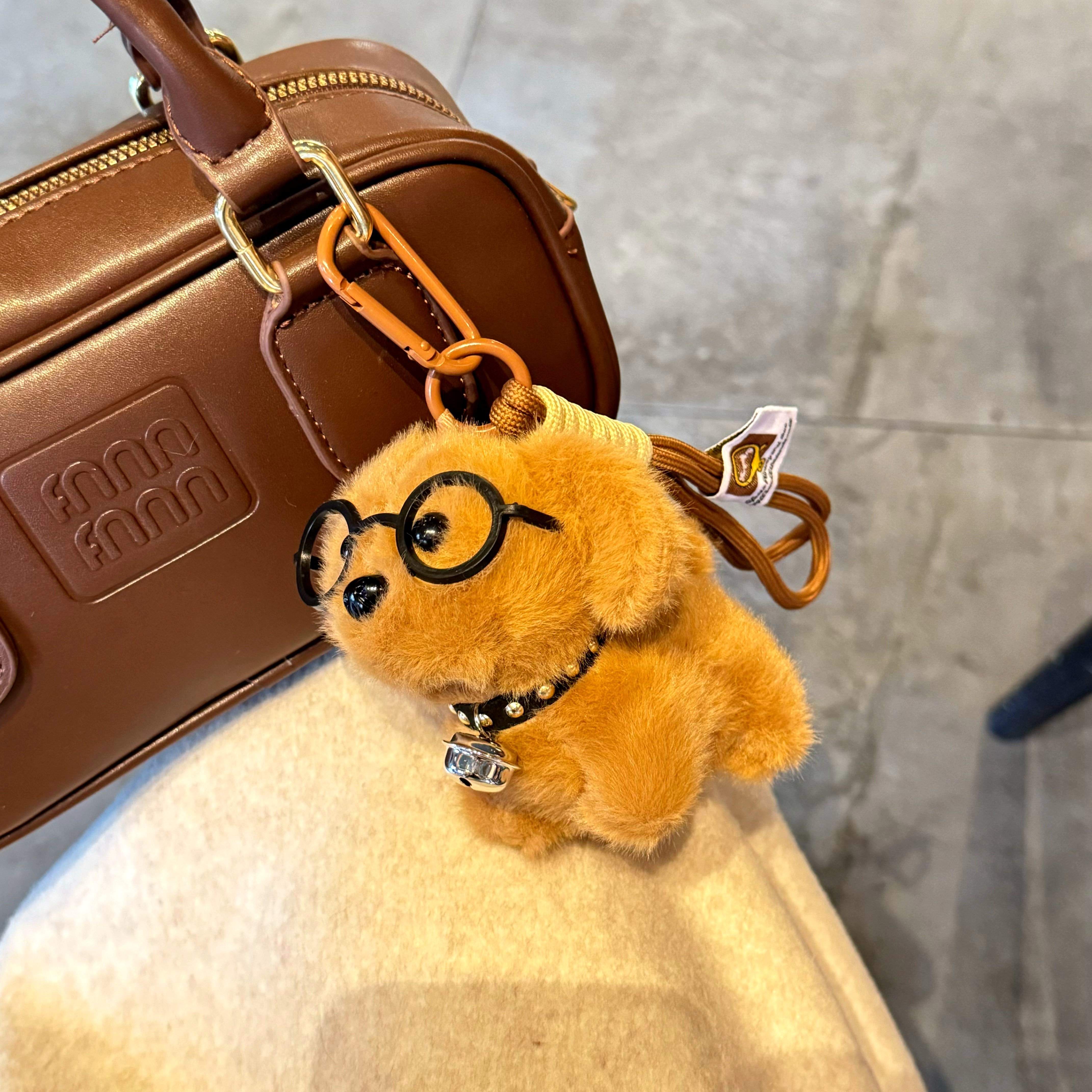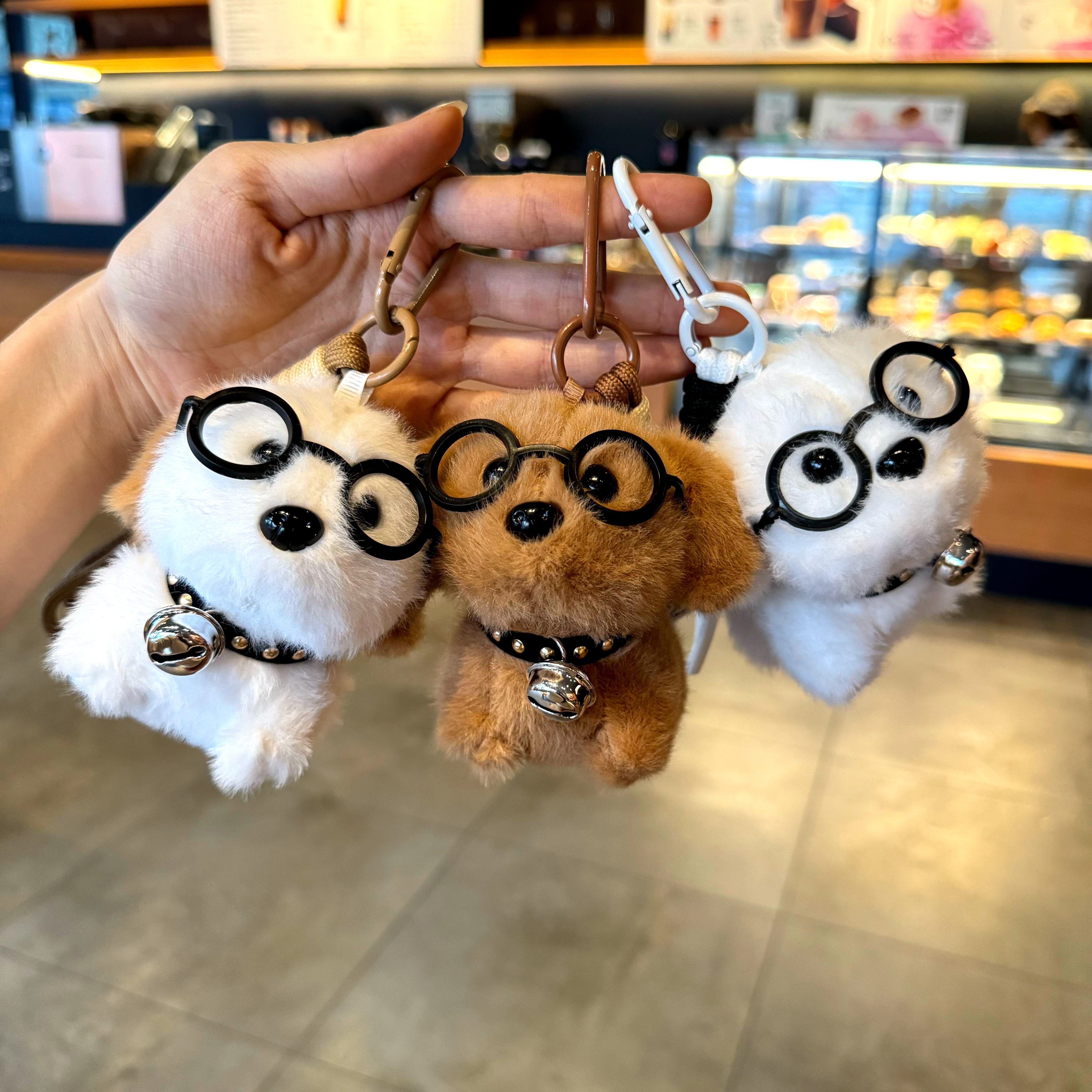 Cute Dog Glasses, Puppy Bell, Plush Doll, Creative Keychain, Puppy Bag Pendant, Small Gift for Boys