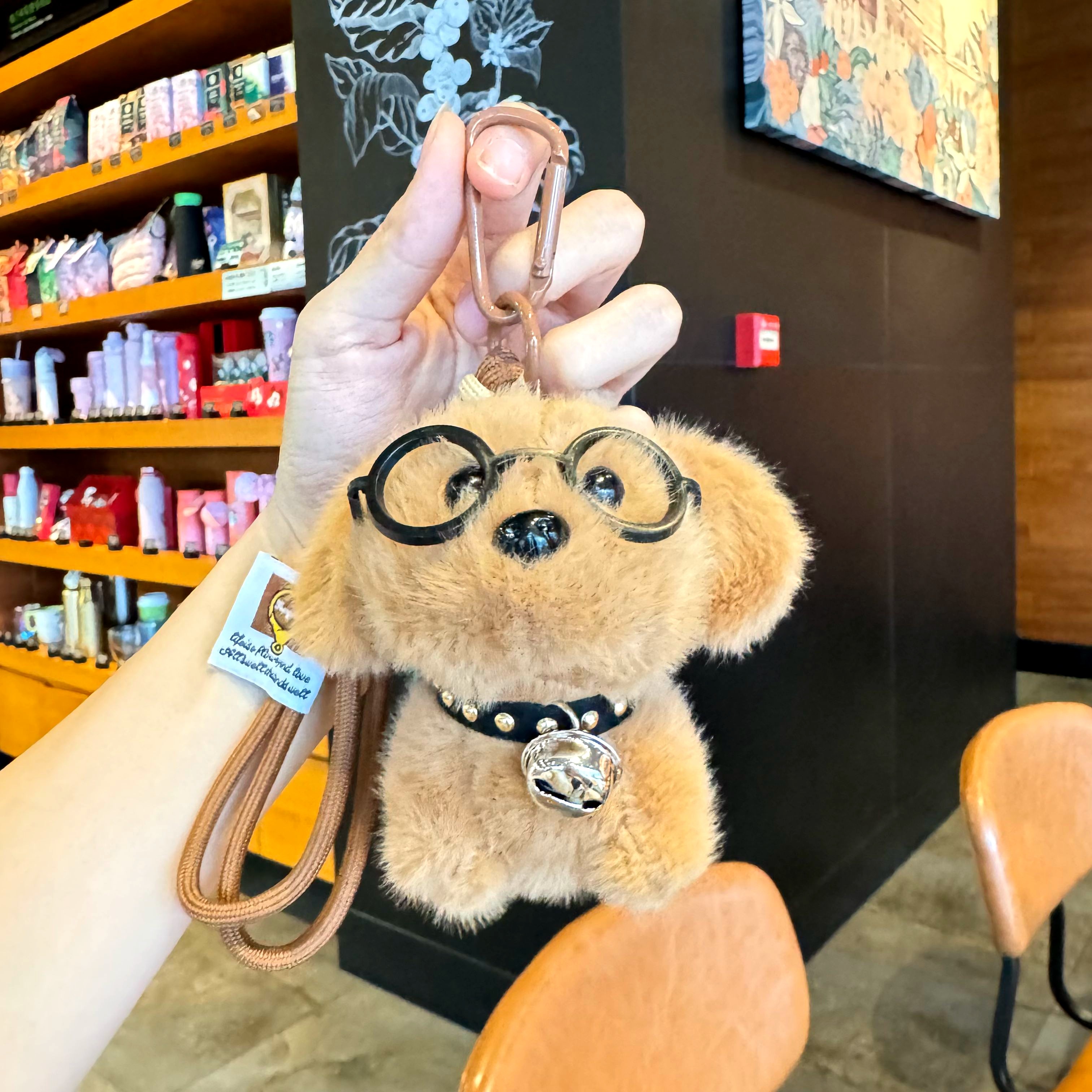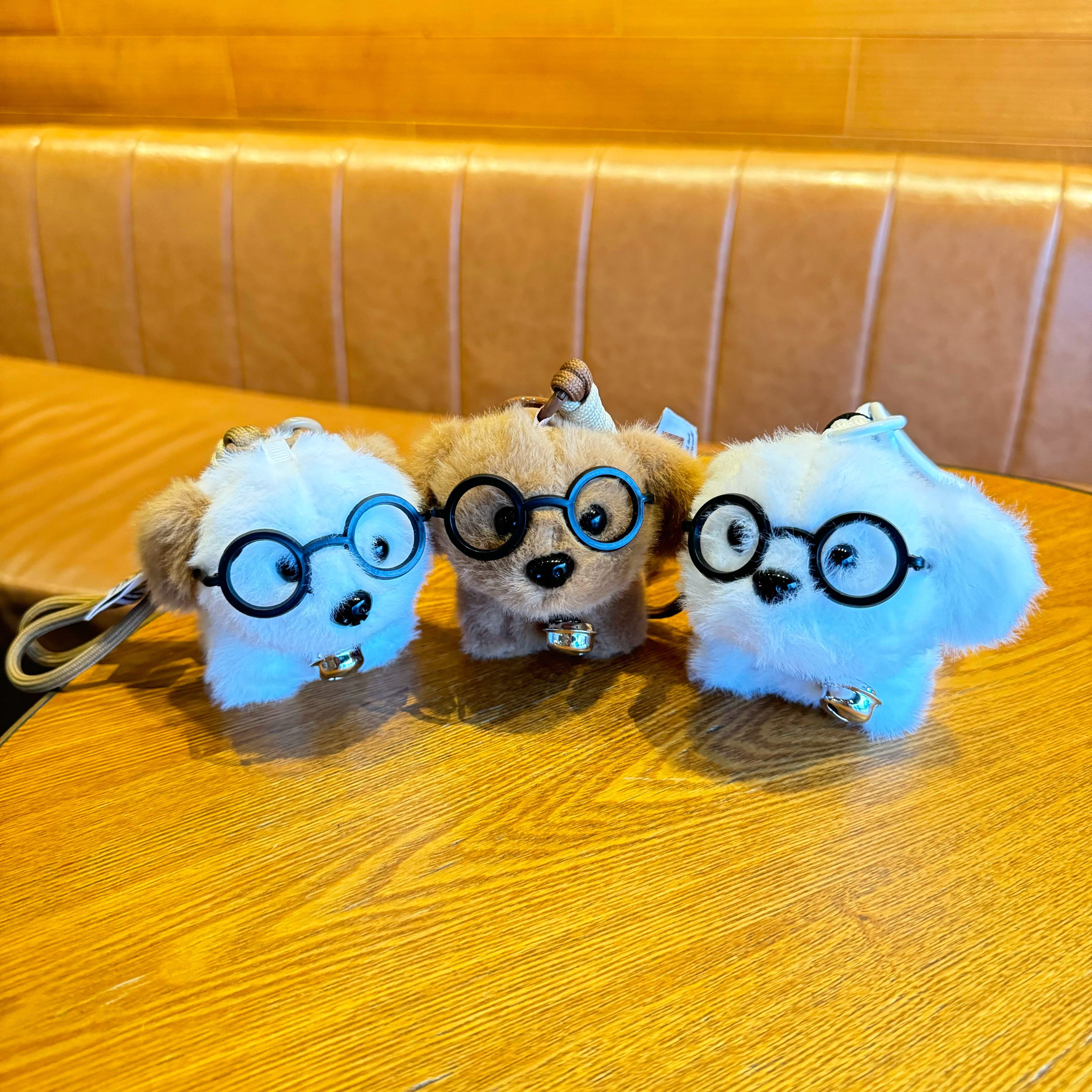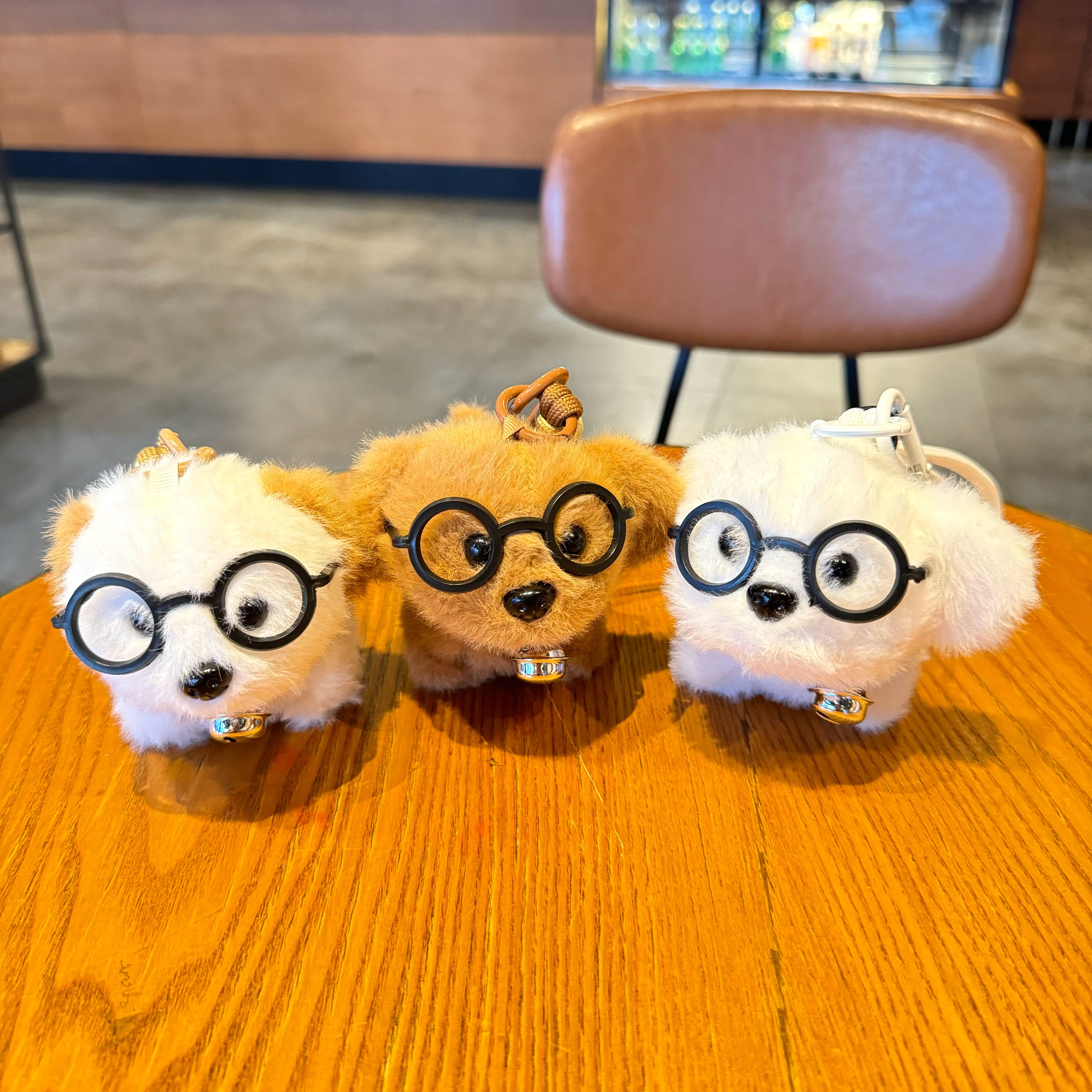 Cute Dog Glasses, Puppy Bell, Plush Doll, Creative Keychain, Puppy Bag Pendant, Small Gift for Boys