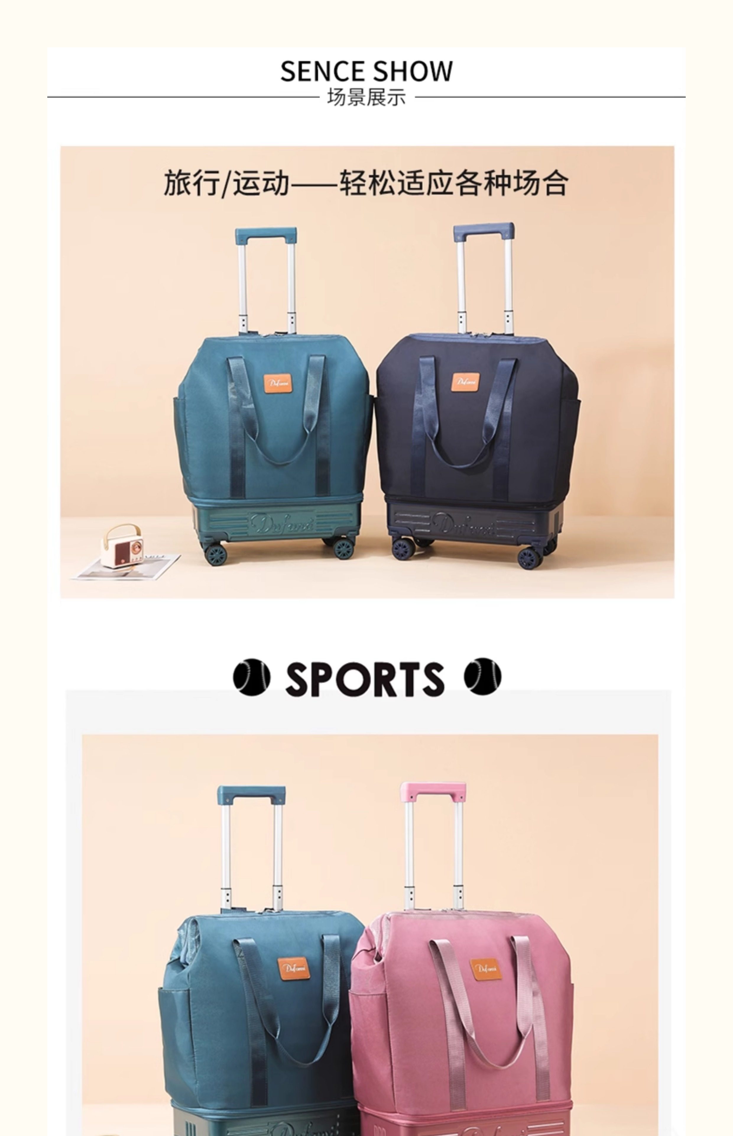 New Universal Wheel Travel Bag with Trolley Luggage Bag Storage Bag Business Trip Travel Bag Large Capacity Lightweight Maternity Bag