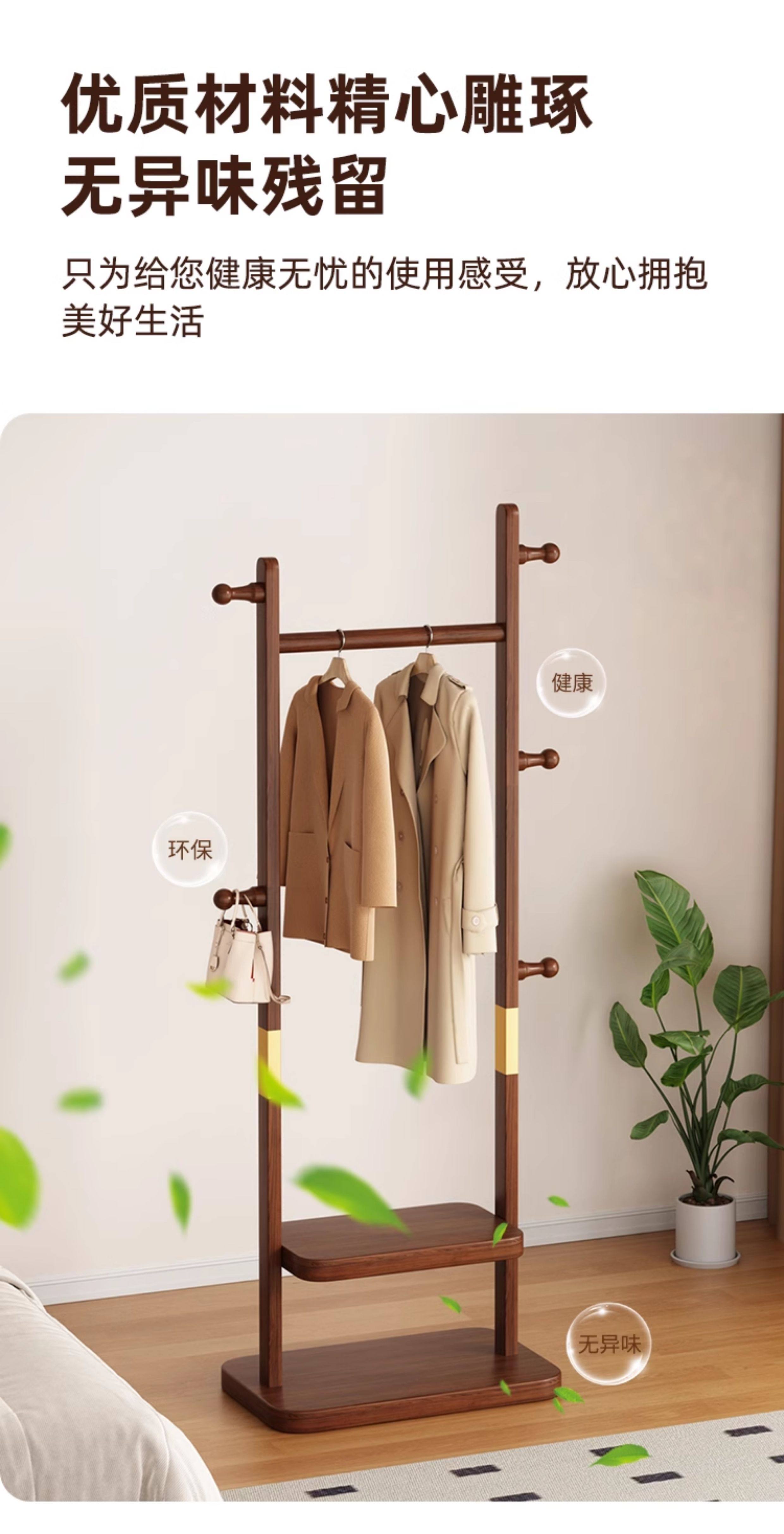Solid Wood Floor-Standing Clothes Hanger, Bedroom Coat Rack, Household Clothes Rack That Does Not Take up Space, Clothes Hanger
