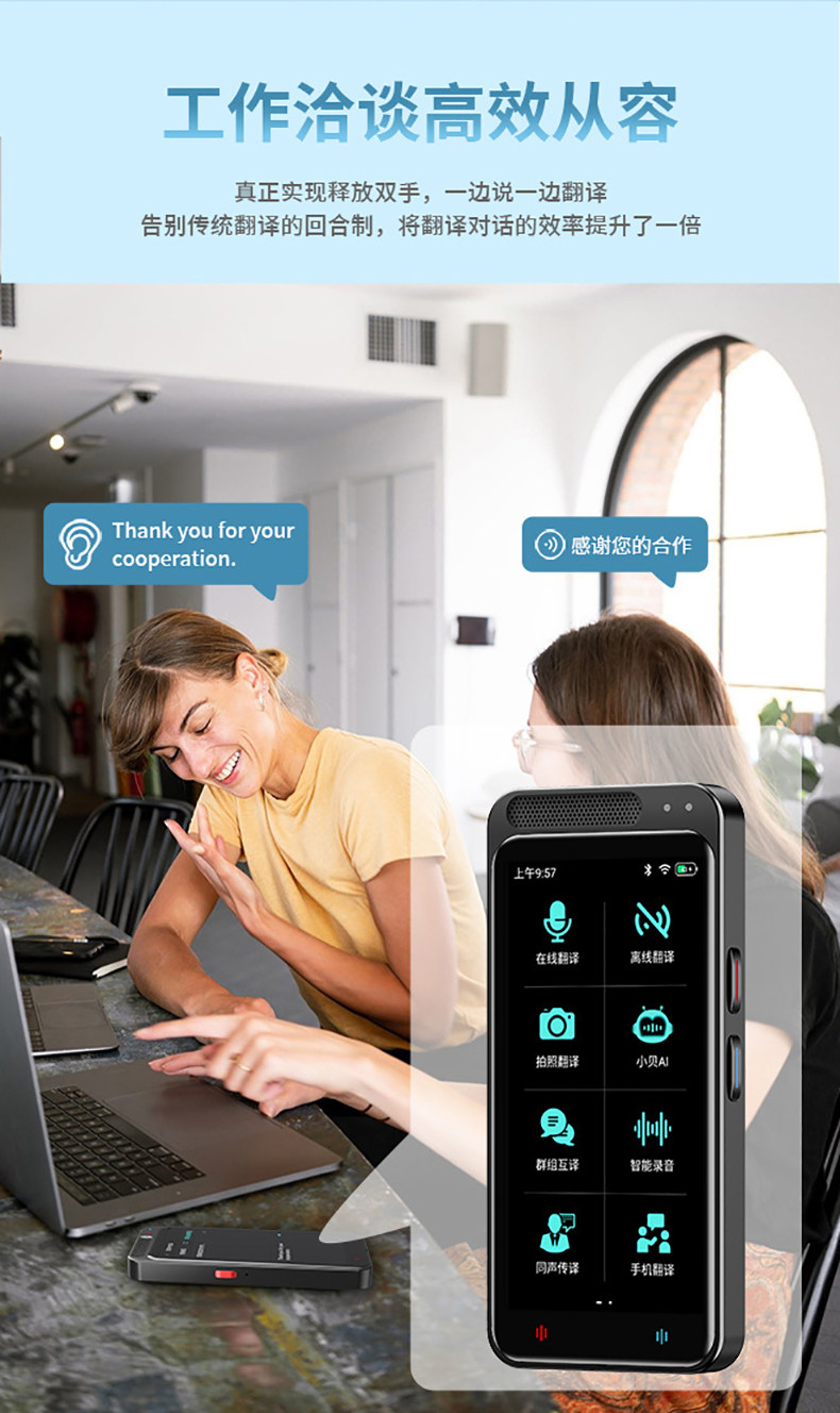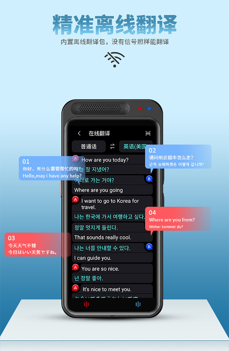 Ai Smart Translator Simultaneous Interpreter Offline 2025 New Model English Japanese Russian Cantonese Thai Vietnamese Korean Indonesian Etc. Portable Translation Device for Traveling Abroad