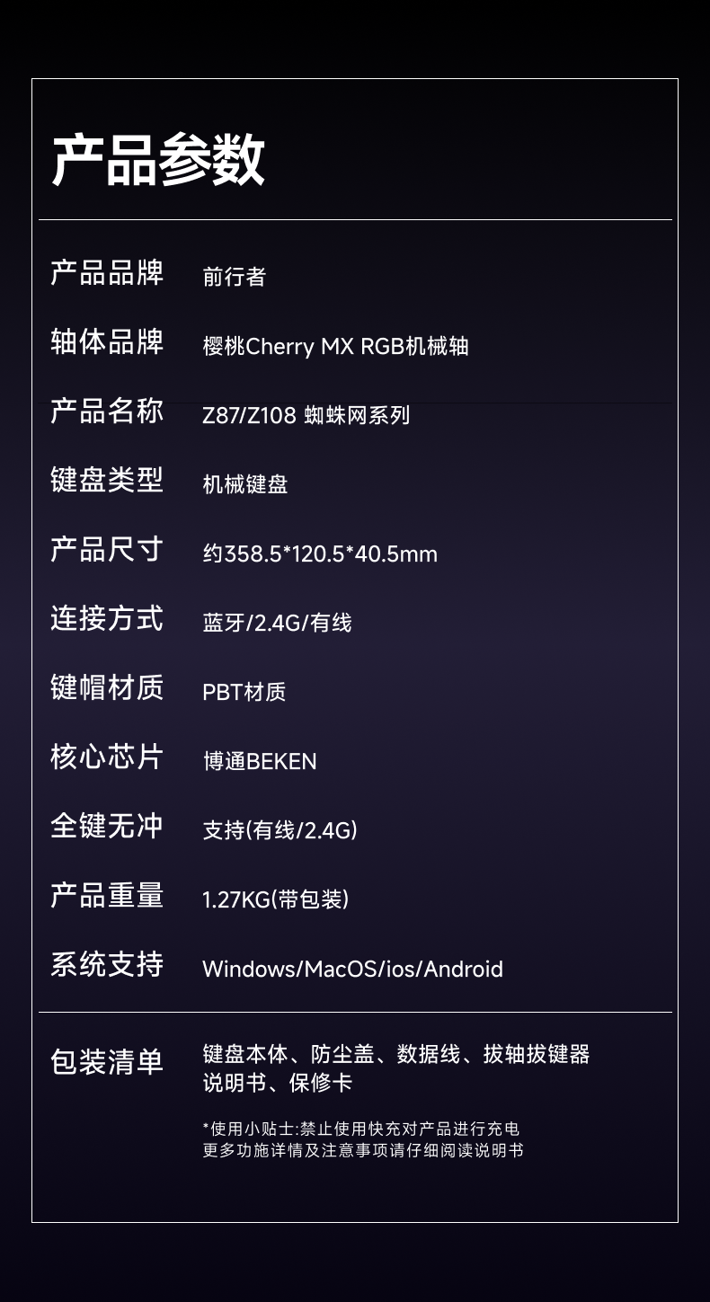 | Color Classification | Place an Order and Enjoy a Gift, and It Will Be Shipped Quickly Within 24 Hours. Contact Customer Service to Place an Order and Get a Free Cleaning Kit,Black 87-Key [White Light-Positive Engraving] Wired Version,,Spider Web 87-Key [White Light-Side Engraving] Wired Version,,Microdust 87-Key [White Light-Side Engraving] Wired Version,,Blackberry 87 Keys [White Light-Side Engraving] Wired Version,,Black 108-Key [White Light - Positive Engraving] Wired Version,Spider Web 108-Key Mechanical Keyboard [White Backlight - Side Engraved] - Wired Version,Microdust 108 Keys [White Light-Side Engraving] Wired Version,,Blackberry 108-Key [White Light-Side Engraving] Wired Version,,The Following Is the Three-Mode Rgb Light Version [Full-Key Hot-Swappable/Three-Mode Connection/Music Rhythm],Black 87-Key [Rgb Light-Positive Engraving] Wireless Bluetooth Three-Mode Version,,Spider Web 87-Key Mechanical Keyboard - [Rgb Backlit - Side Engraved] Wireless Bluetooth Tri-Mode Version,Microdust 87-Key [Rgb Light-Side Engraving] Wireless Bluetooth Three-Mode Version,,Blackberry 87-Key [Rgb Lighting - Side Engraved] Wireless Bluetooth Tri-Mode Keyboard,Black 108-Key [Rgb Light-Positive Engraving] Wireless Bluetooth Three-Mode Version,,Spider Web 108-Key Mechanical Keyboard [Rgb Backlit - Side Engraved] Wireless Bluetooth Tri-Mode,Microdust 108 Keys [Rgb Light-Side Engraving]. Wireless Bluetooth Three-Mode Version,,Blackberry 108-Key [Rgb Lighting - Side Engraved] Wireless Bluetooth Tri-Mode Keyboard |