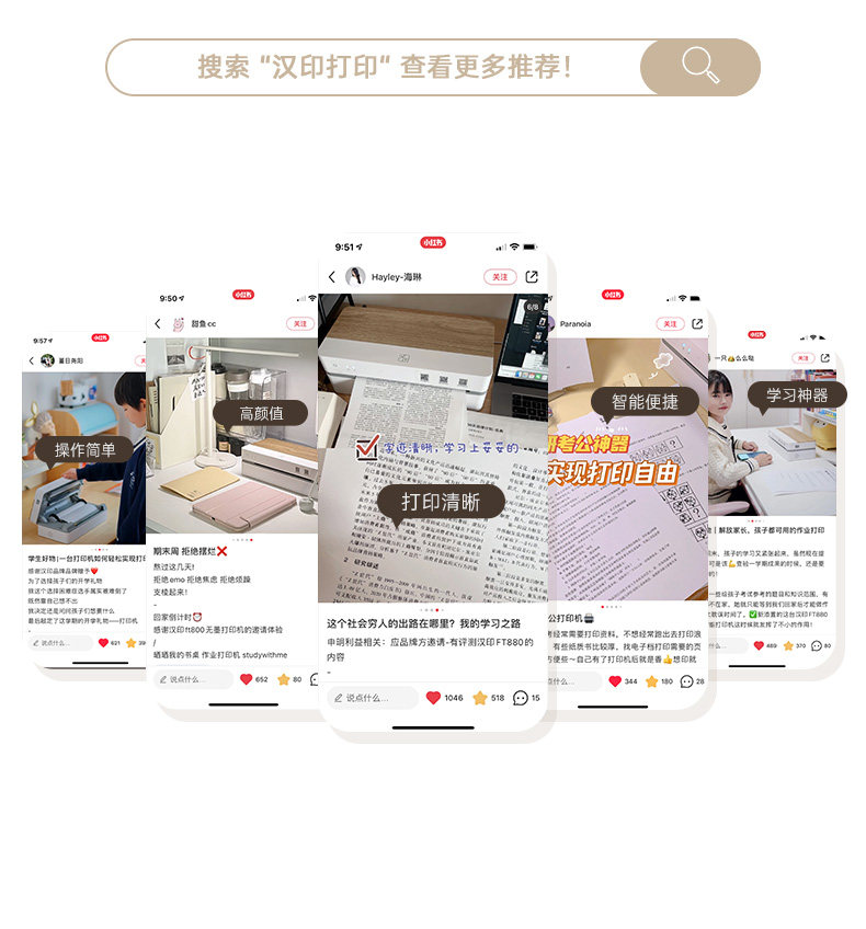 Hanyin Ft880 Tmall Genie Smart Printer Home-Use Small Student A4 Mini Dormitory Office Remote Wifi Wireless Bluetooth All-In-One Machine Homework Voice Control A4 Inkless Printer