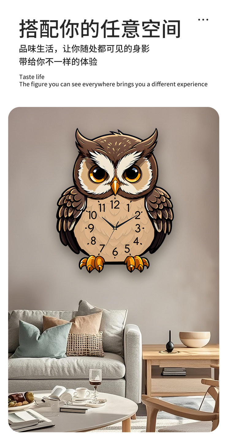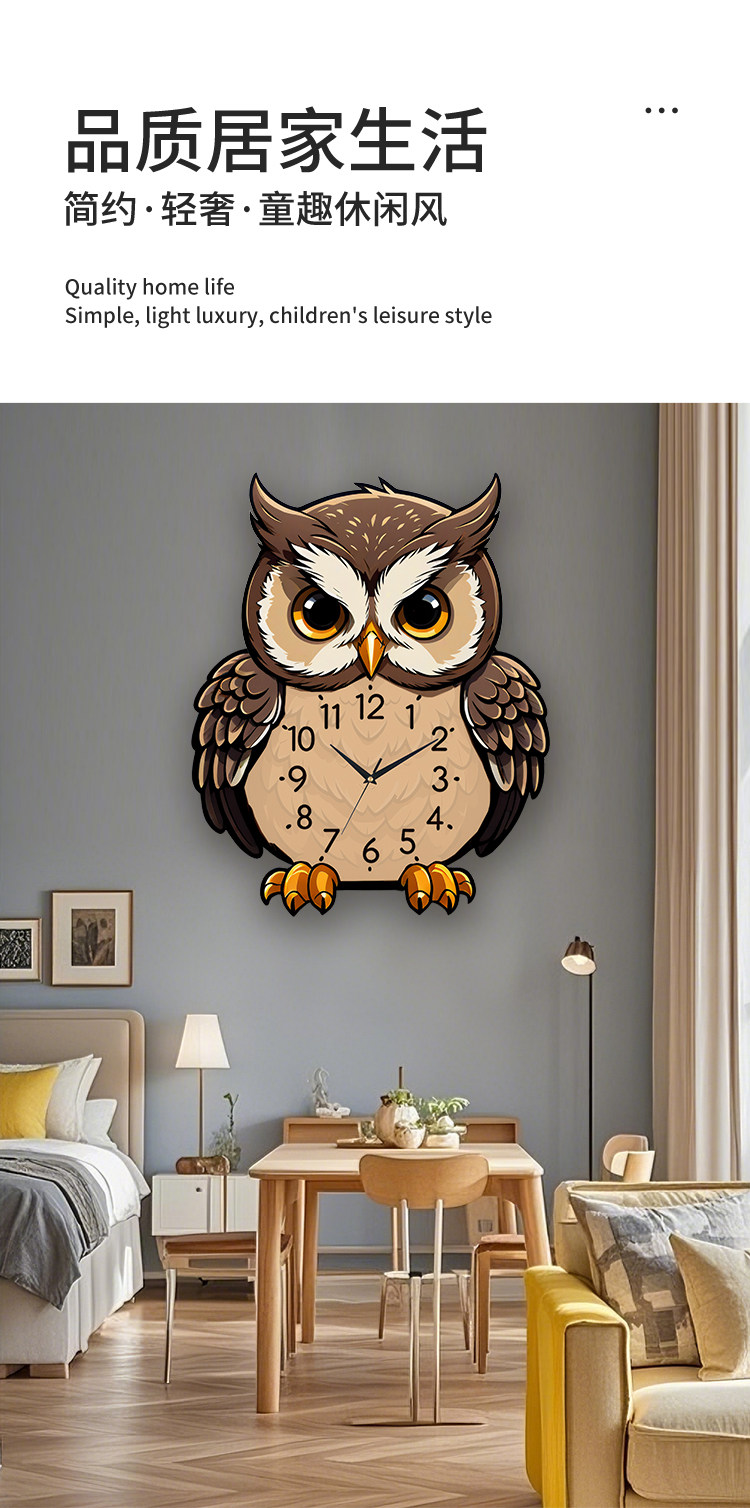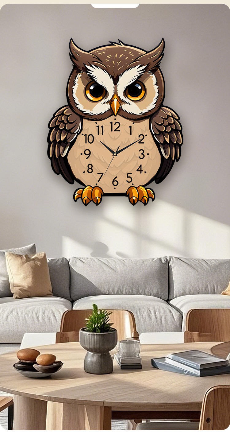 Owl Wall Clock Cartoon Creative Living Room Dining Table Clock Wall Decoration Silent No-Drill Personalized Simple Clock