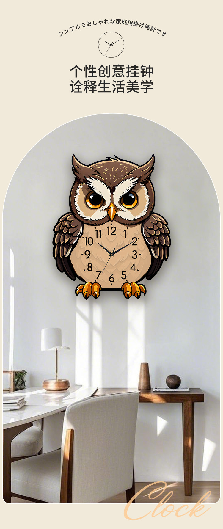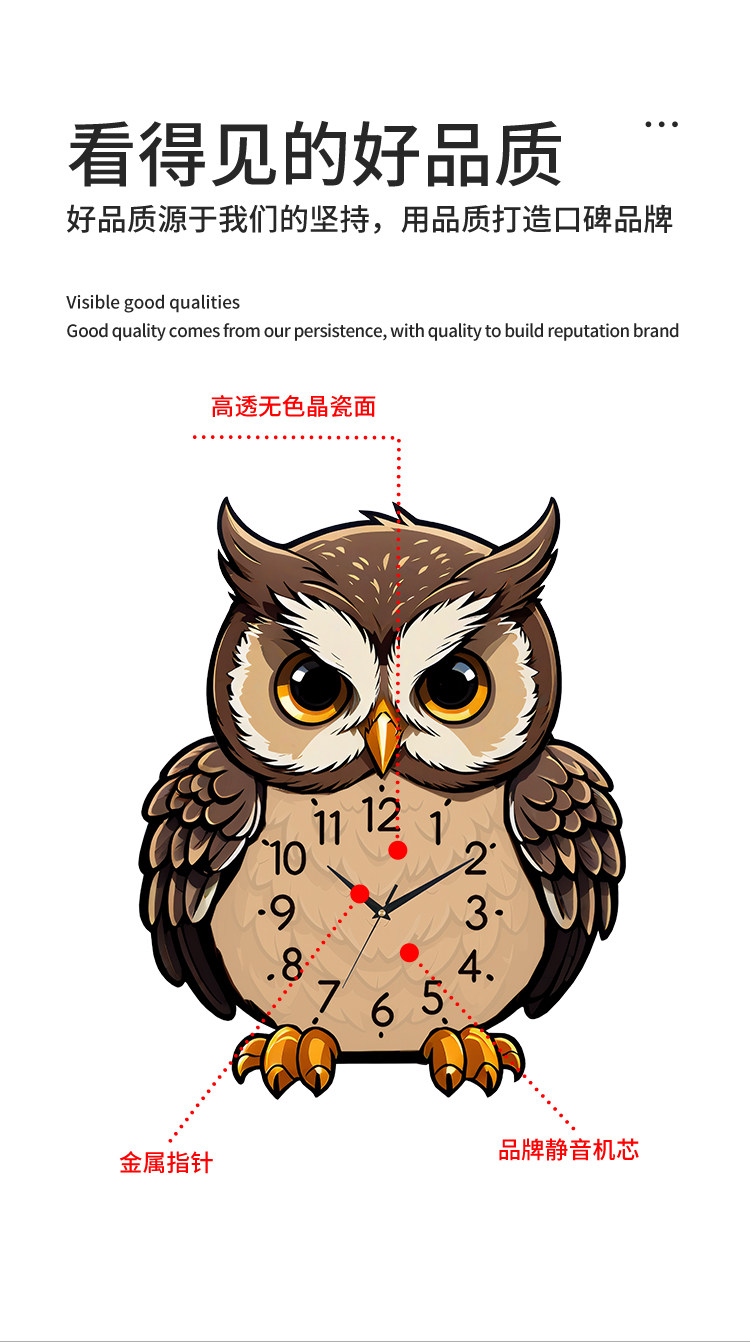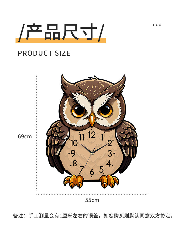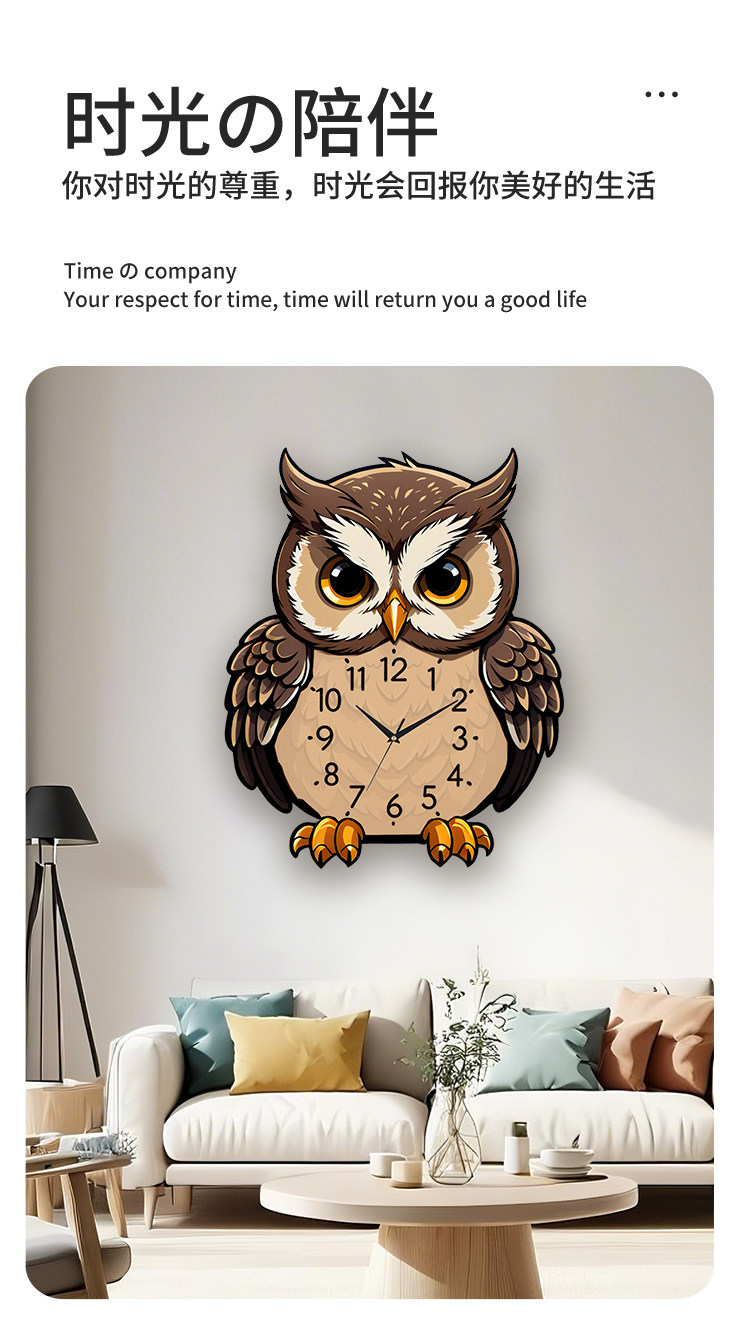 Owl Wall Clock Cartoon Creative Living Room Dining Table Clock Wall Decoration Silent No-Drill Personalized Simple Clock