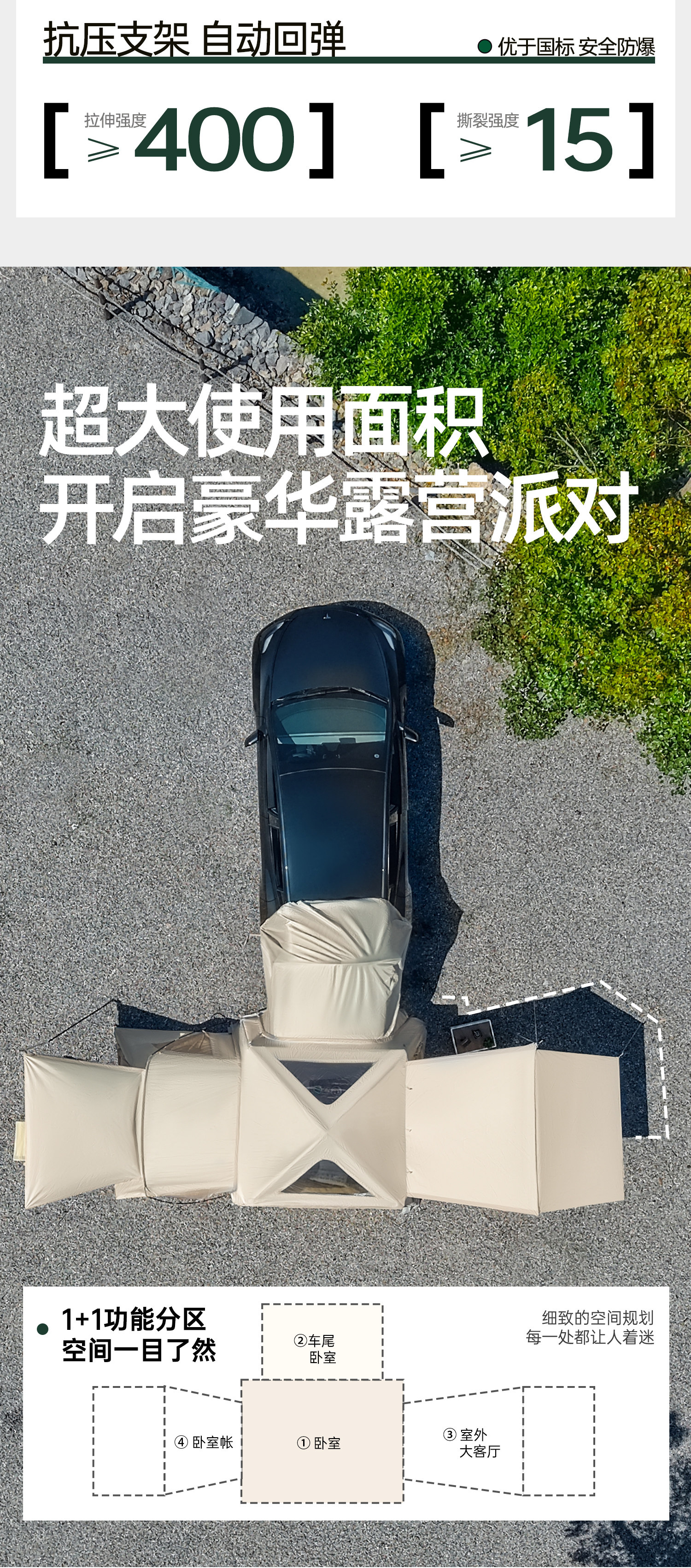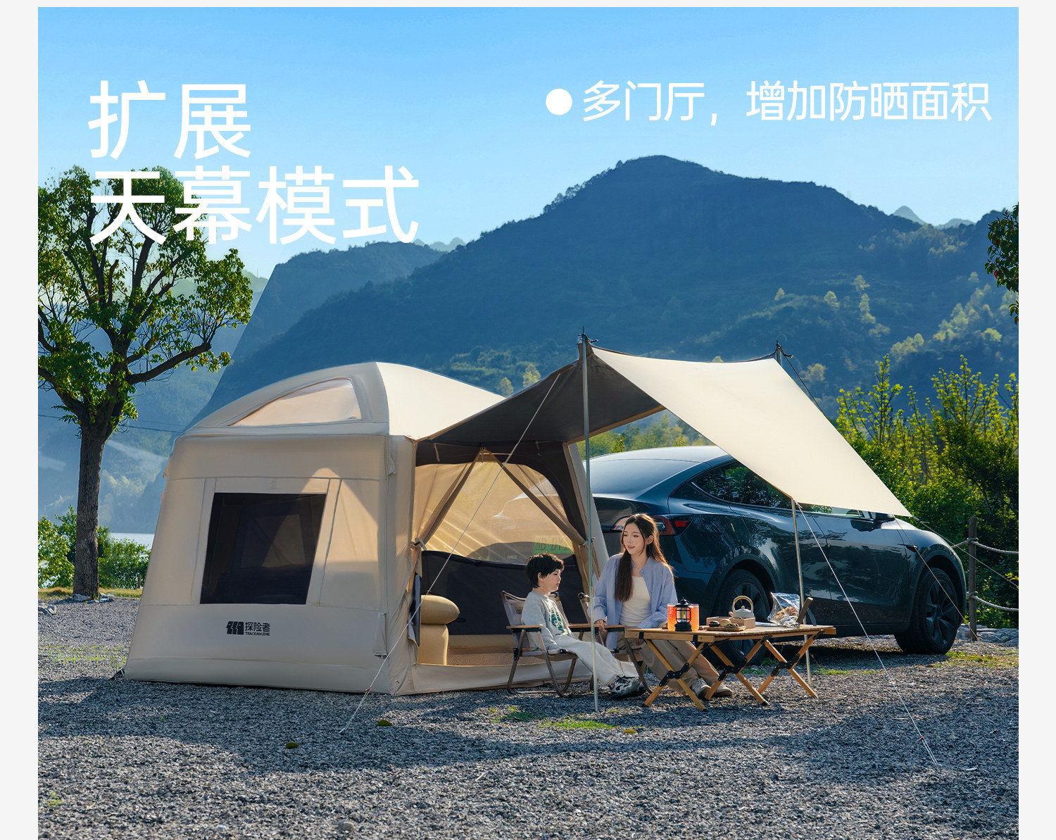Explorer Car Rear Inflatable Tent Suv Ideal for Tesla Outdoor Camping, No Setup Required, Fully Automatic Canopy Integrated