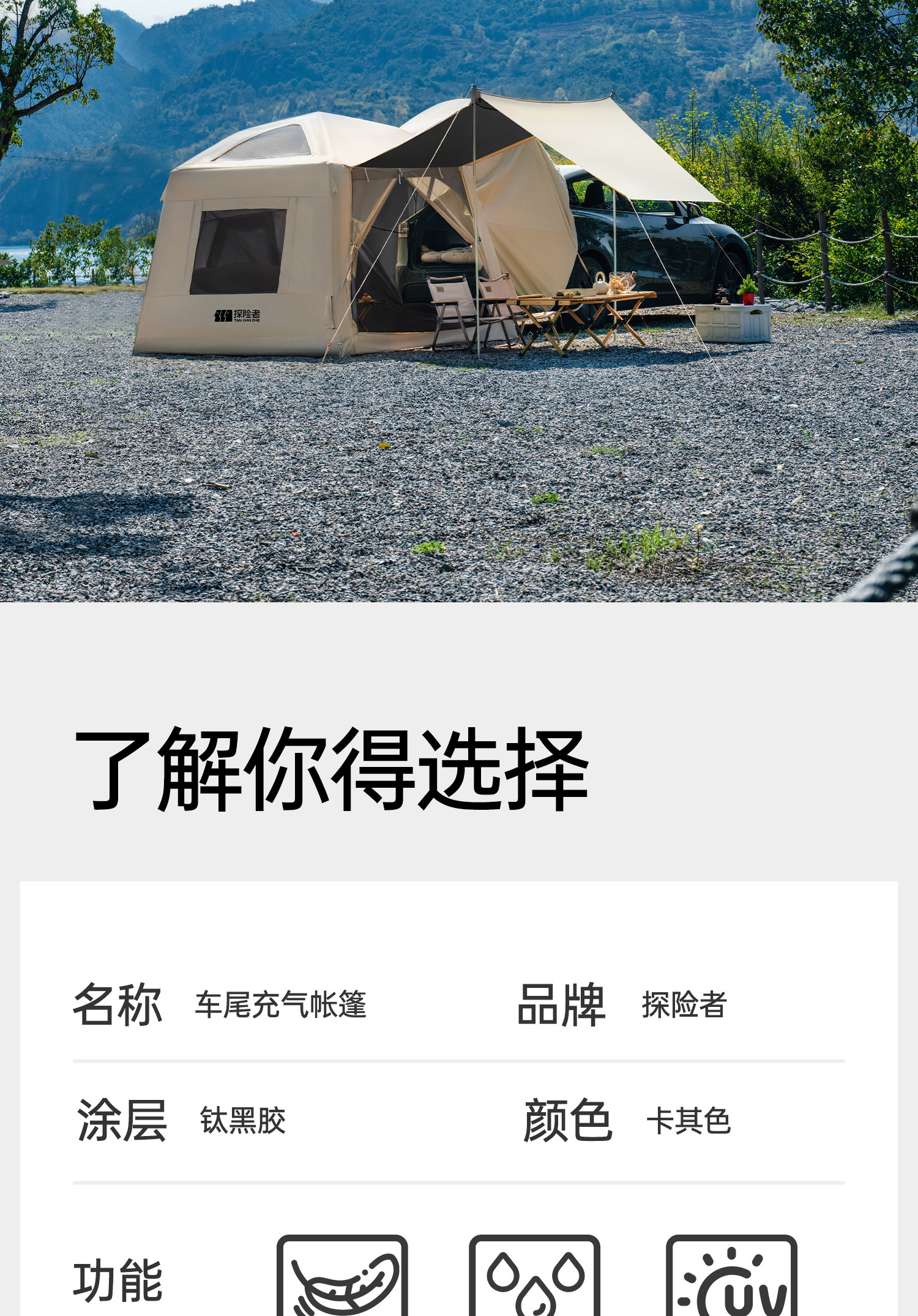 | Color Classification | [Yundao 8.0 Car Rear Tent-Automatic Inflatable/Titanium Vinyl Model/Upgraded Canopy] Main Canopy Tent + Side Tent + Link Piece,Khaki - Car Tail Tent [Accessory Zone],Main Canopy Tent - Silver Glue Model [Excluding Link Piece + Side Tent],Main Canopy Tent - Titanium Vinyl Model [Excluding Link Piece + Side Tent],Single Side Tent-Titanium Vinyl Model [Main Tent Not Included],Bicycle Tail Link Piece-Titanium Black Plastic Model [Tent Not Included],Add to Favorites and Cart for Priority Shipping. |