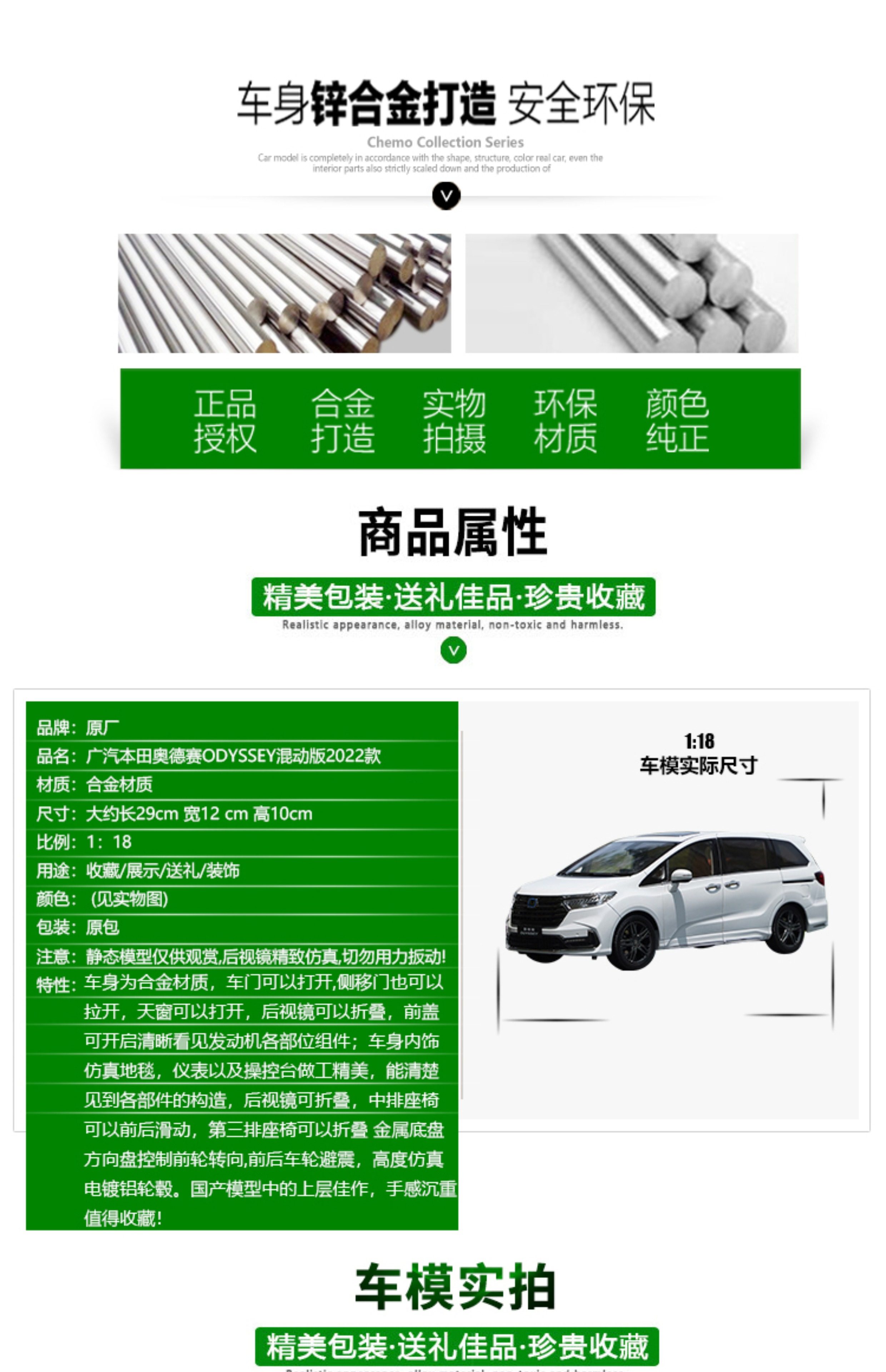 1:18 Original Gac Honda Odyssey Racing Model Honda Odyssey Hybrid Version 2022 Car Model