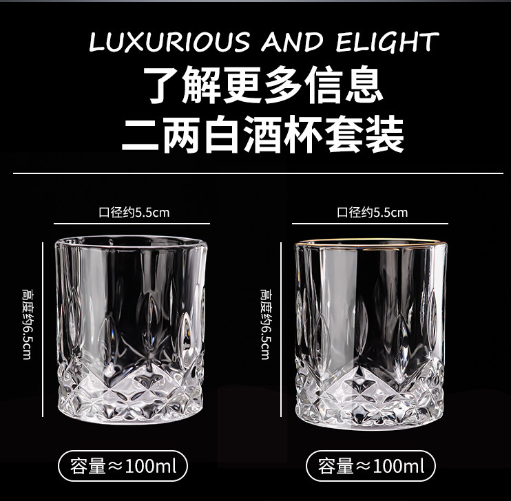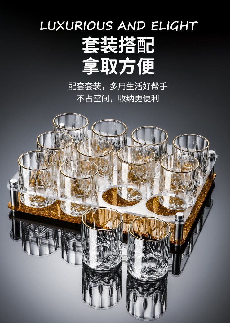 High-End Gold-Plated 0.1kg White Wine Glasses Home Set Crystal Glass Premium Thickened Small Liquor Beer Cups
