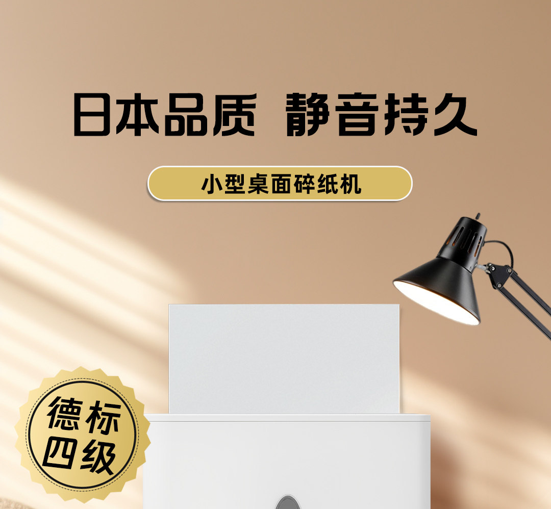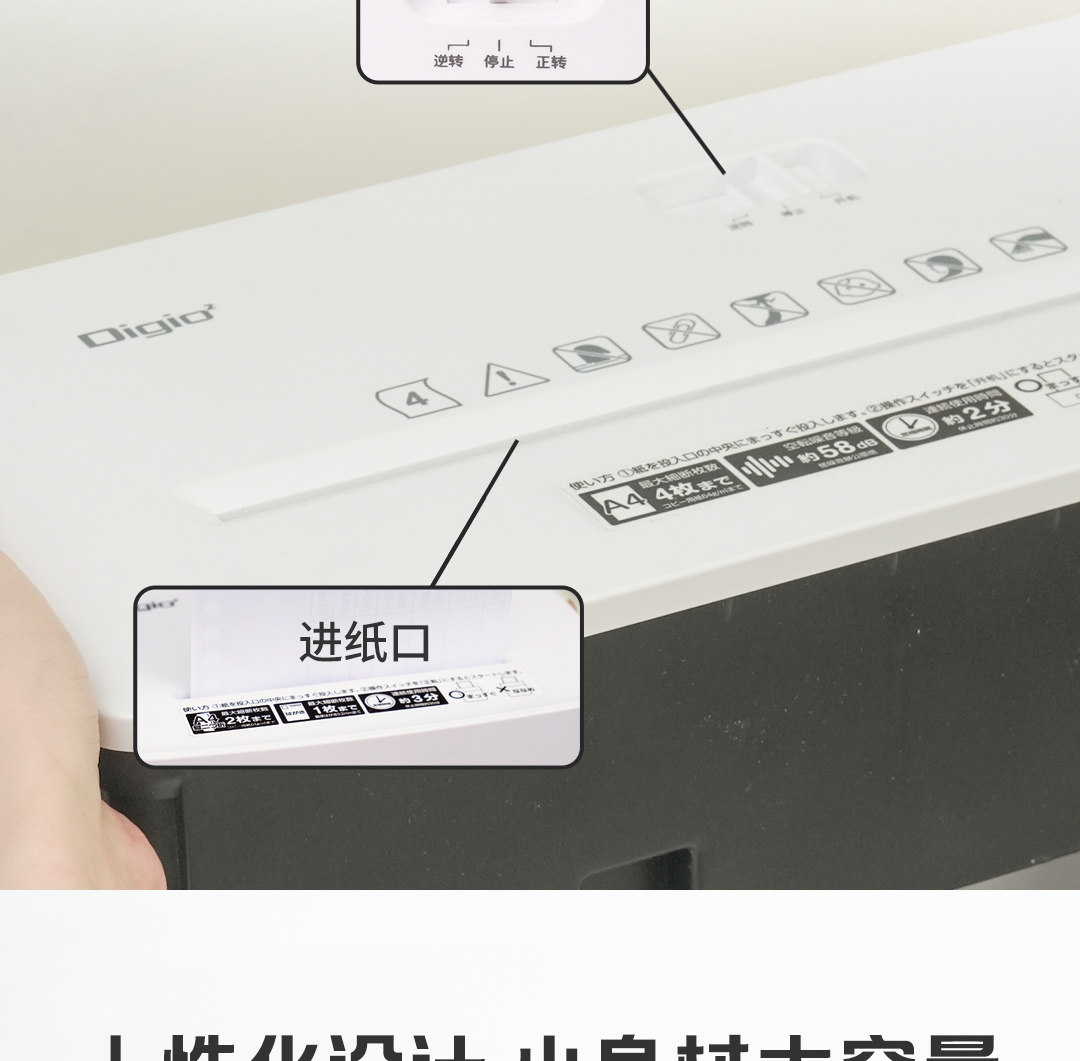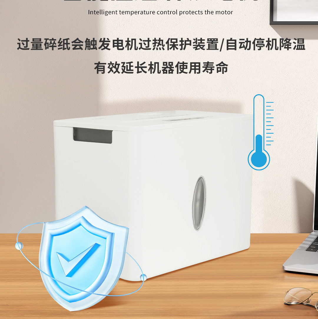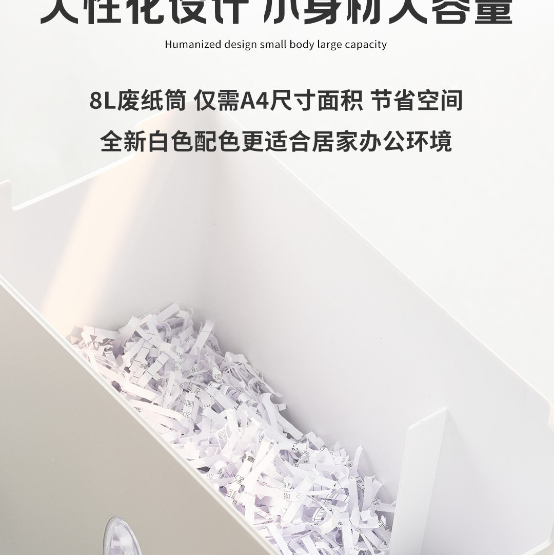 Digio2 Small Desktop Shredder Electric Home Office Automatic Shredding Device Four-Level Security Large Capacity Intelligent Temperature Control Protection Silent Low Noise White Simple Design