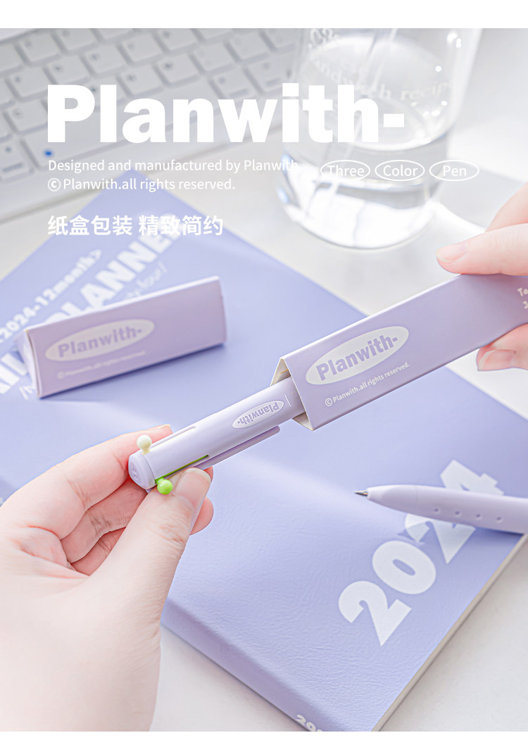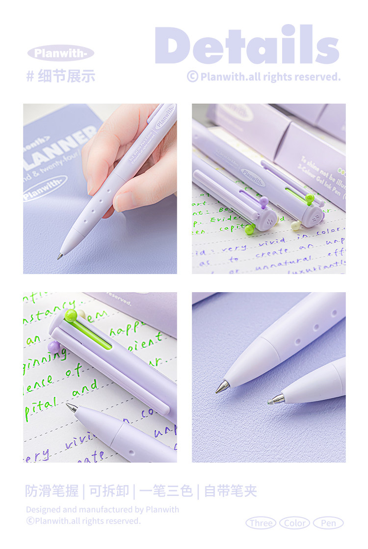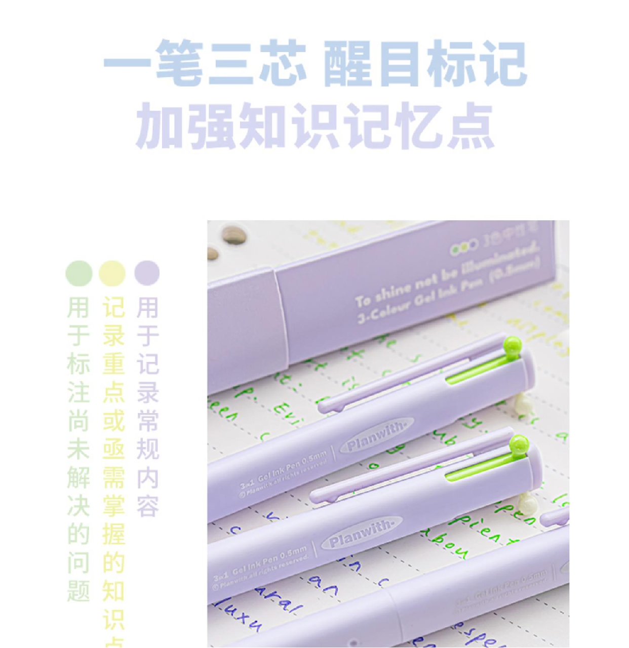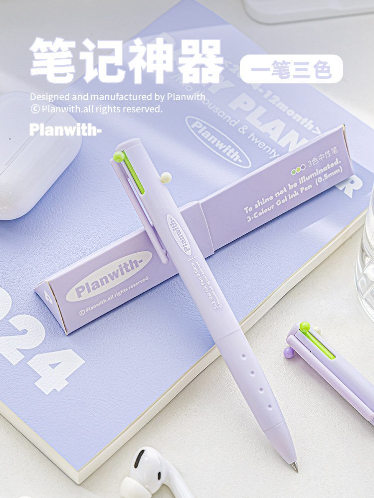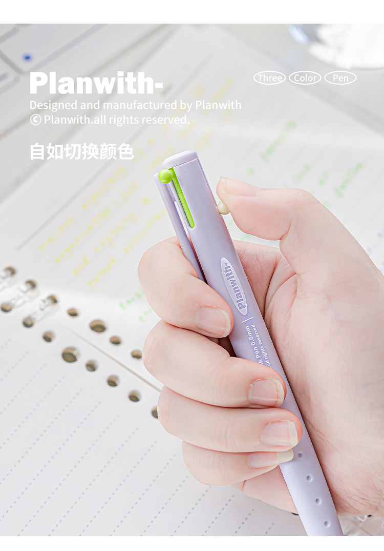 Planwith Three-Color Pen, Gel Pen, Retractable Three-In-One Multi-Functional Module Pen, Special Colored Pen for Taking Notes, Stationery