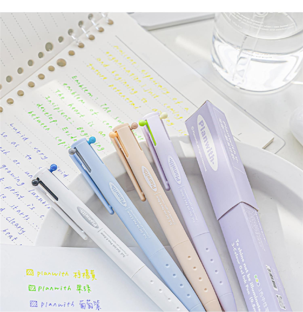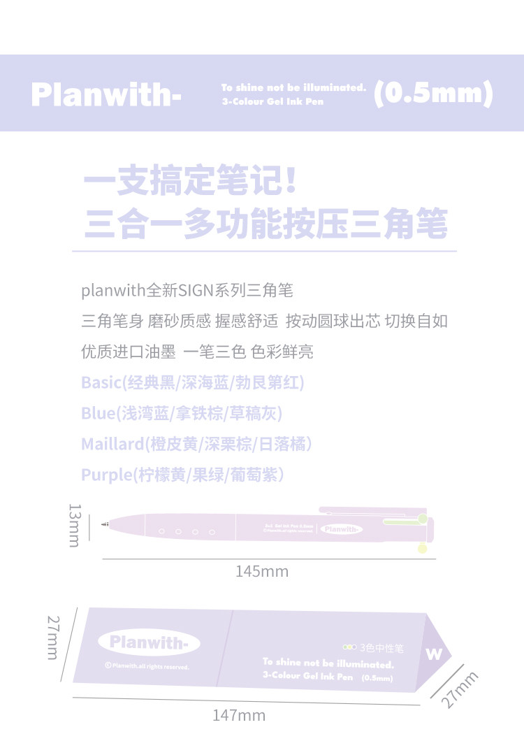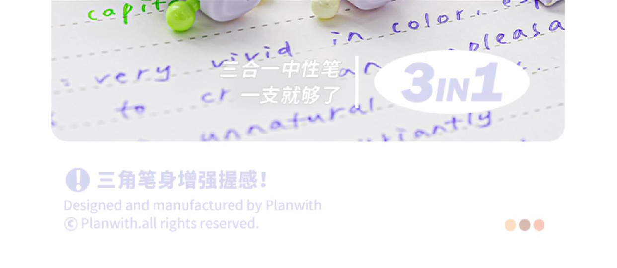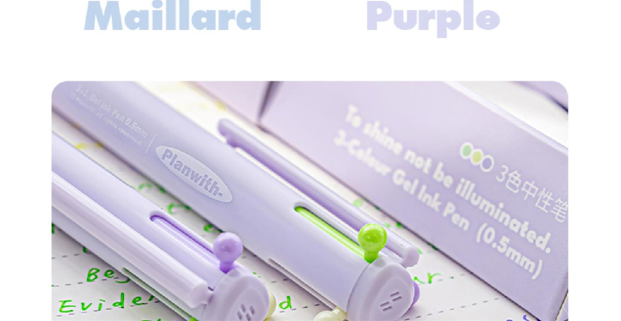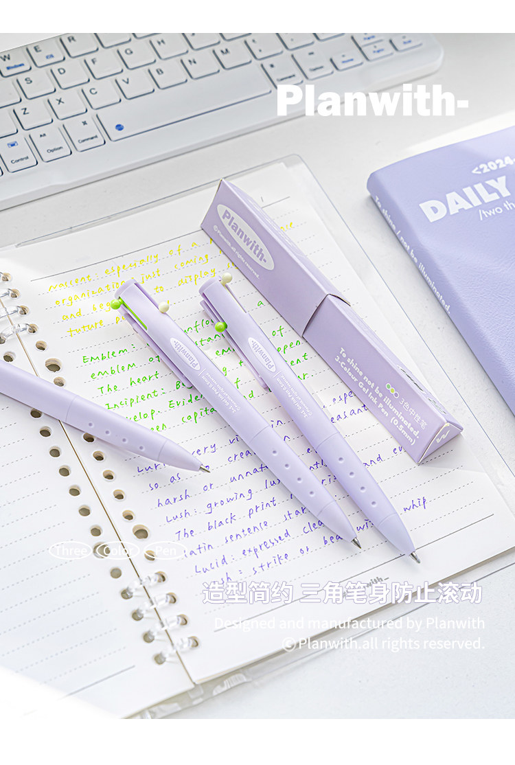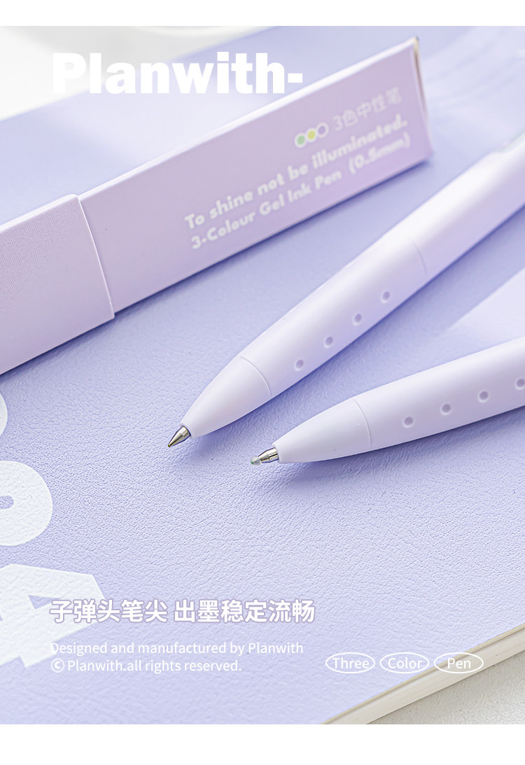 Planwith Three-Color Pen, Gel Pen, Retractable Three-In-One Multi-Functional Module Pen, Special Colored Pen for Taking Notes, Stationery