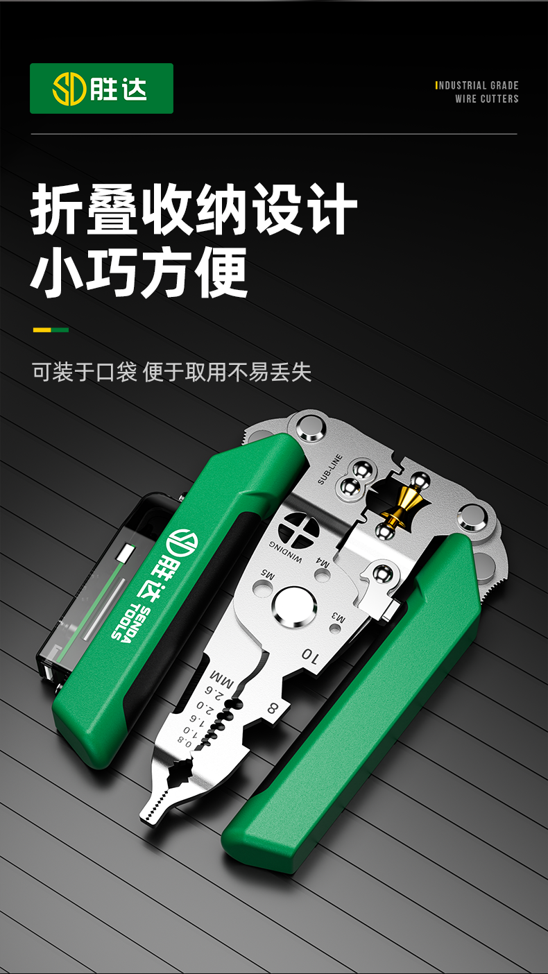 Wire Stripping Pliers, New Multifunctional Pliers for Electricians, Foldable, Industrial-Grade, Wire Stripping, Pen-Type Needle-Nose Pliers
