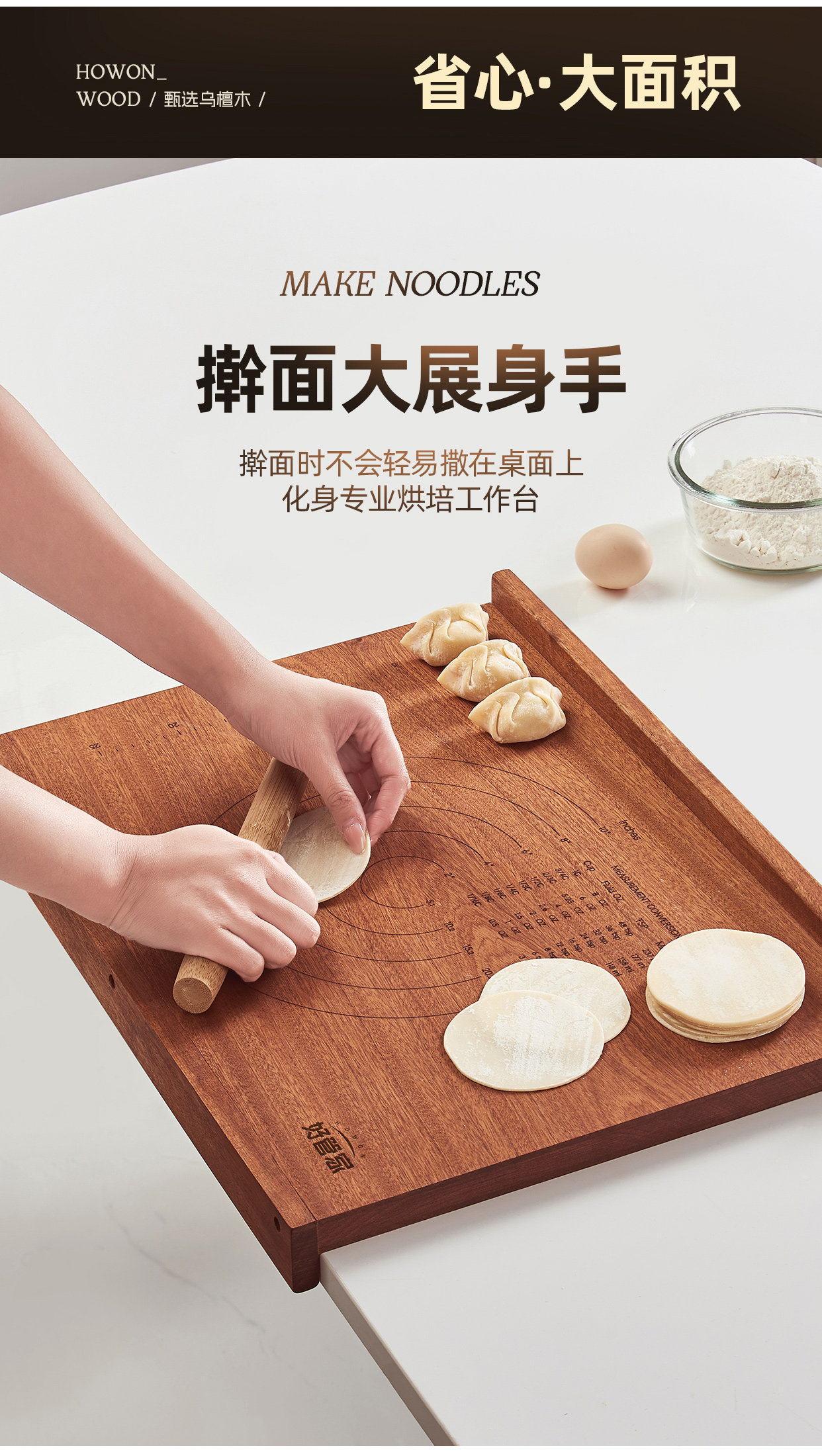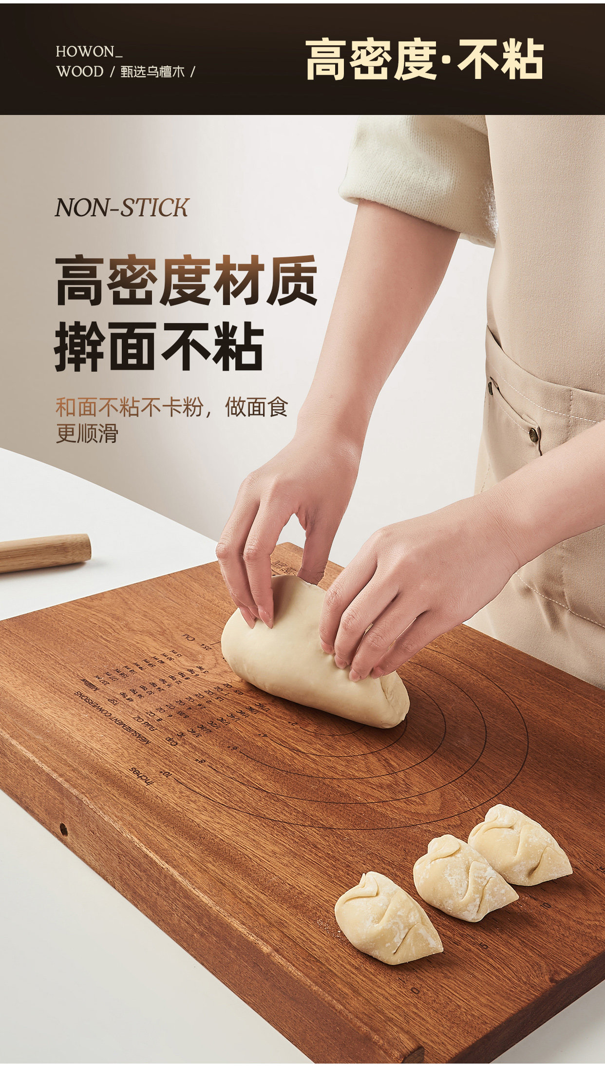 Good Housekeeper Ebony Wood Rolling Board for Home Use, Solid Wood Large Kneading Board, Kitchen Cutting Board, Chopping Board