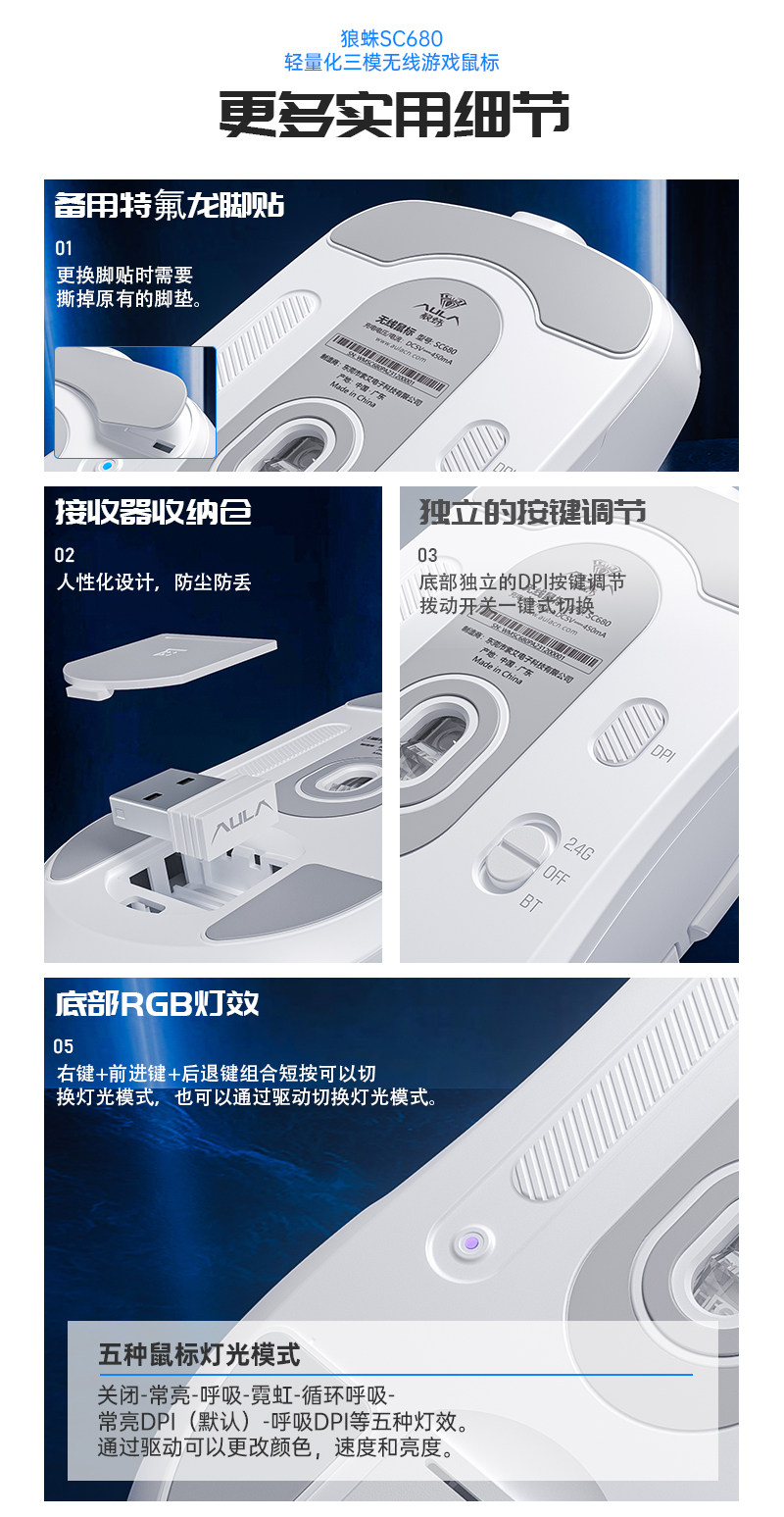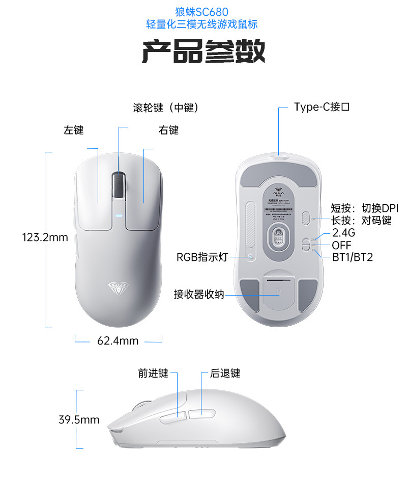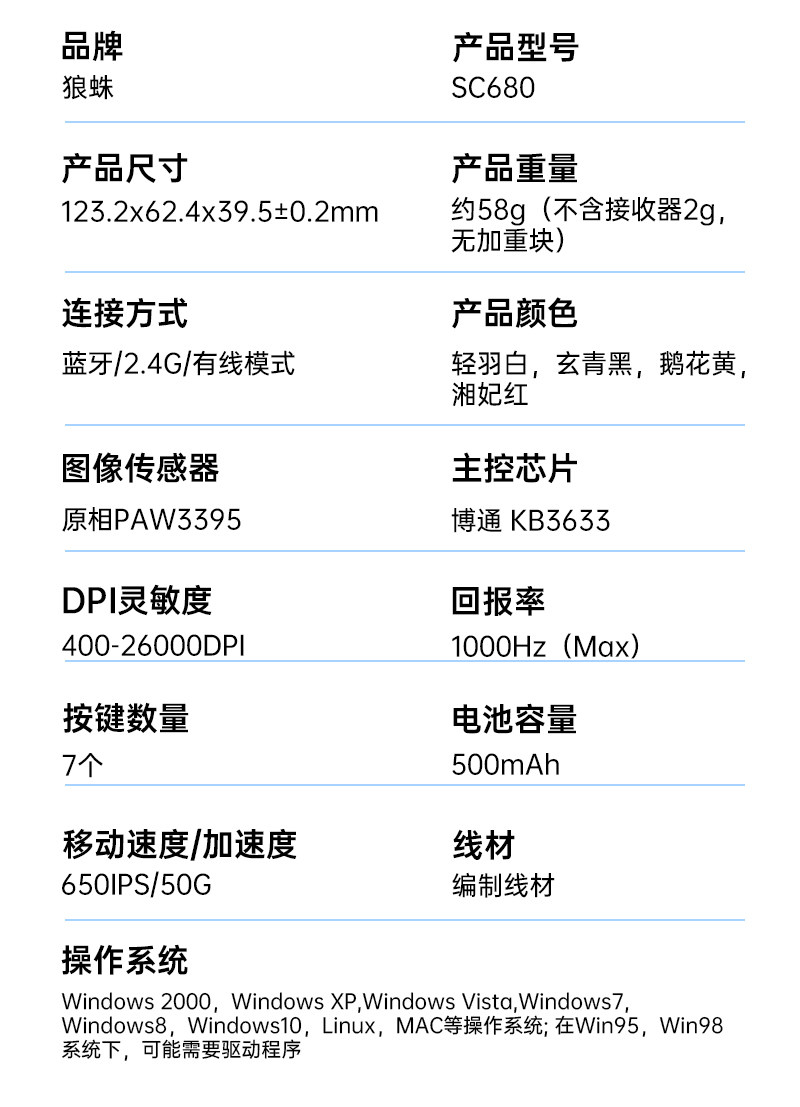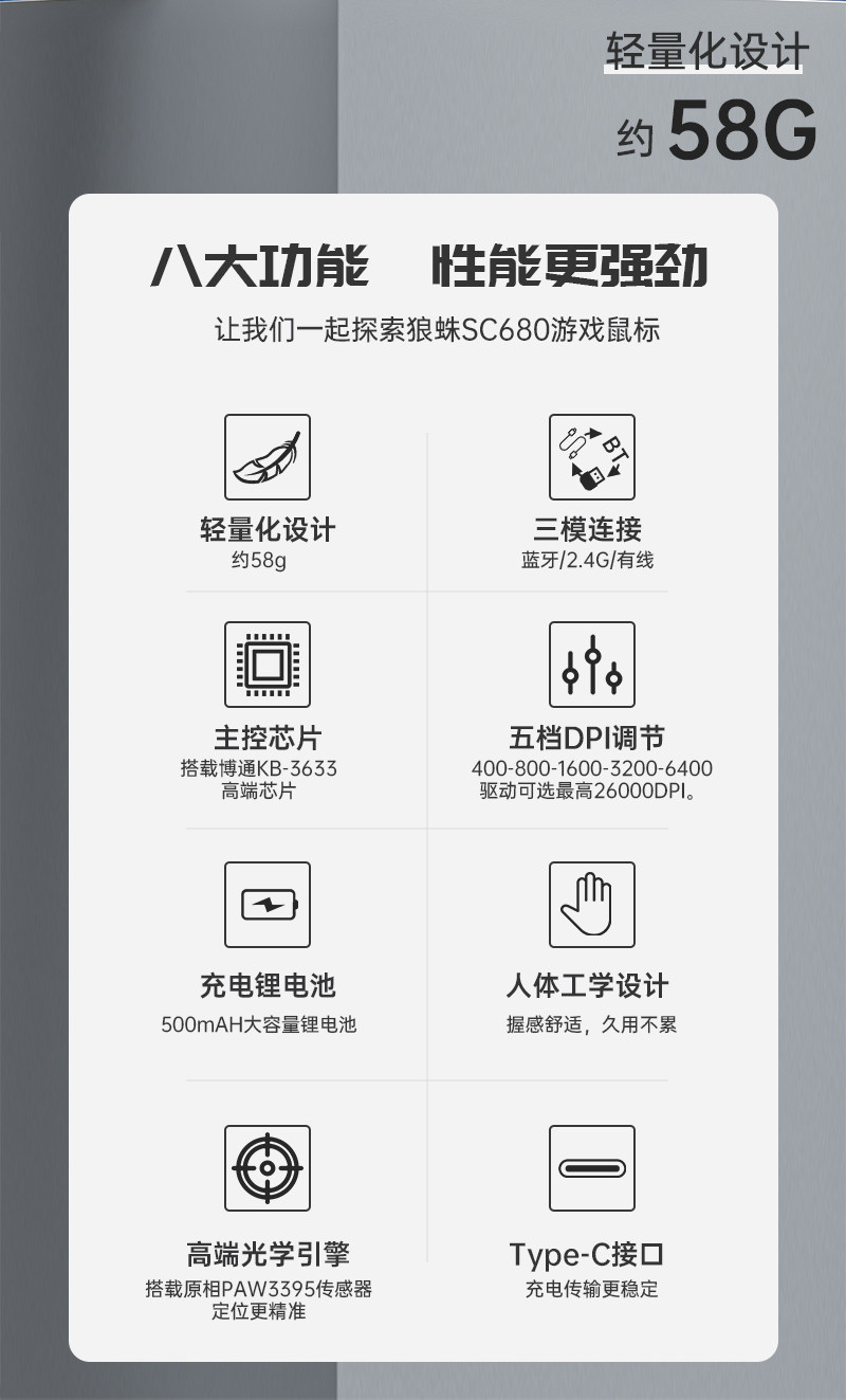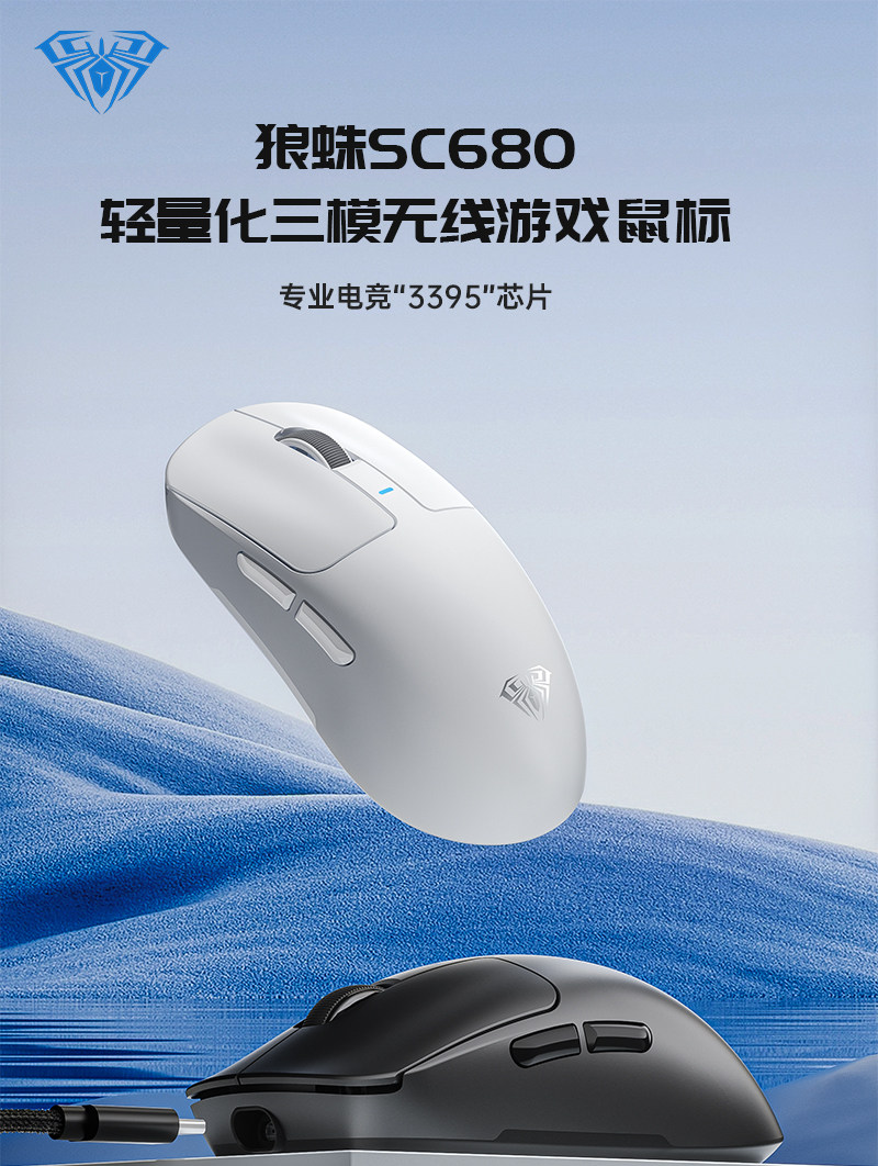 Wolf Spider Sc680 Wireless Three-Mode Gaming Mouse 3395 Sensor Lightweight Office Desktop Computer
