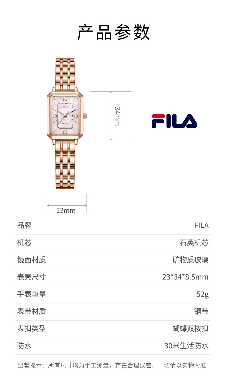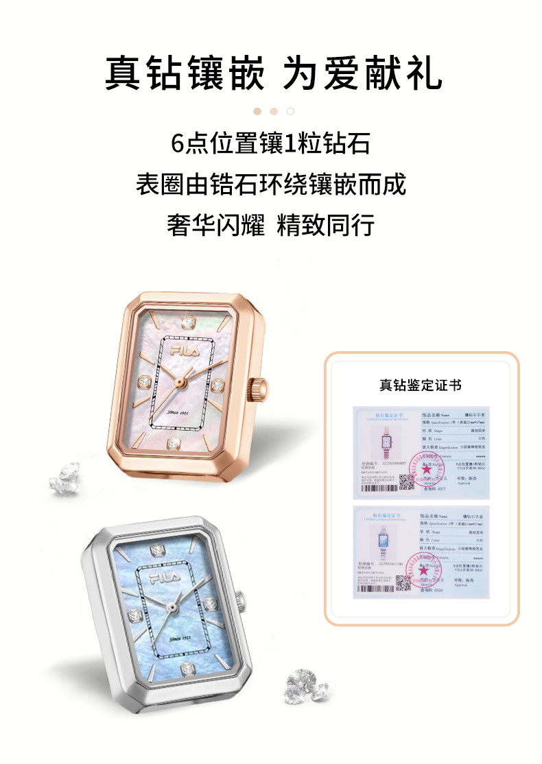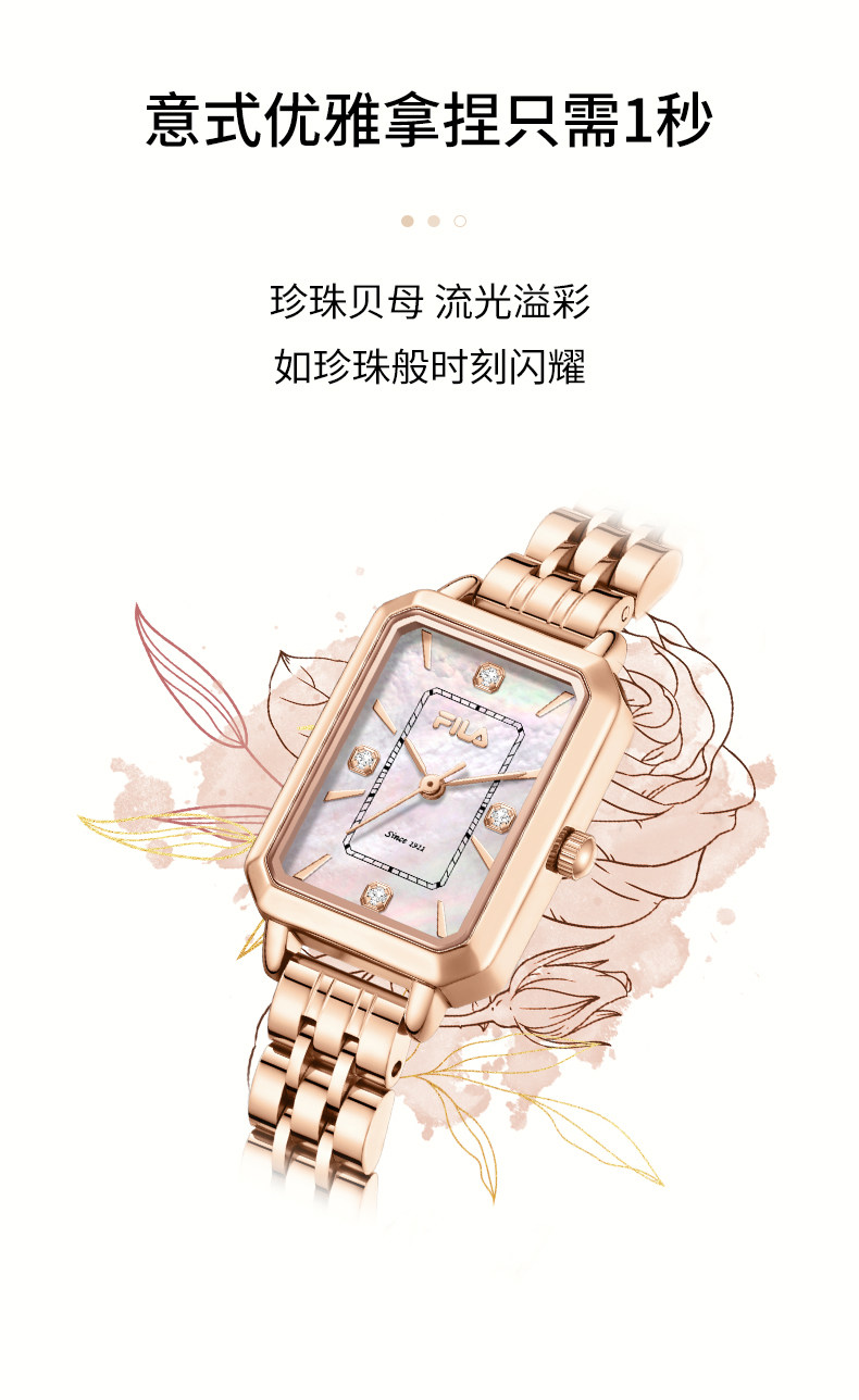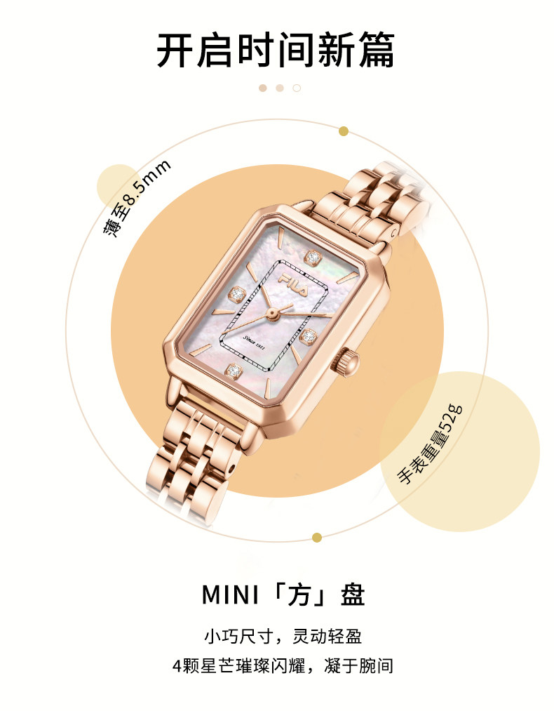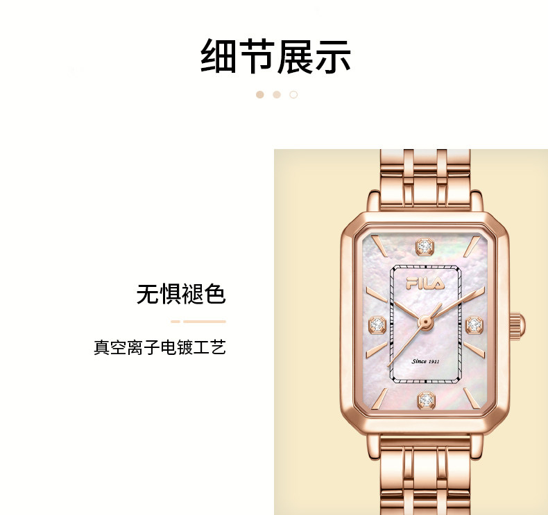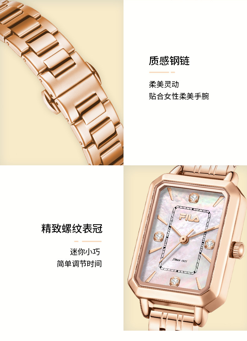 Fila Niche Luxury Women's Watch Classic Retro Small Square Watch Exquisite Steel Band Quartz Watch for Women 6651