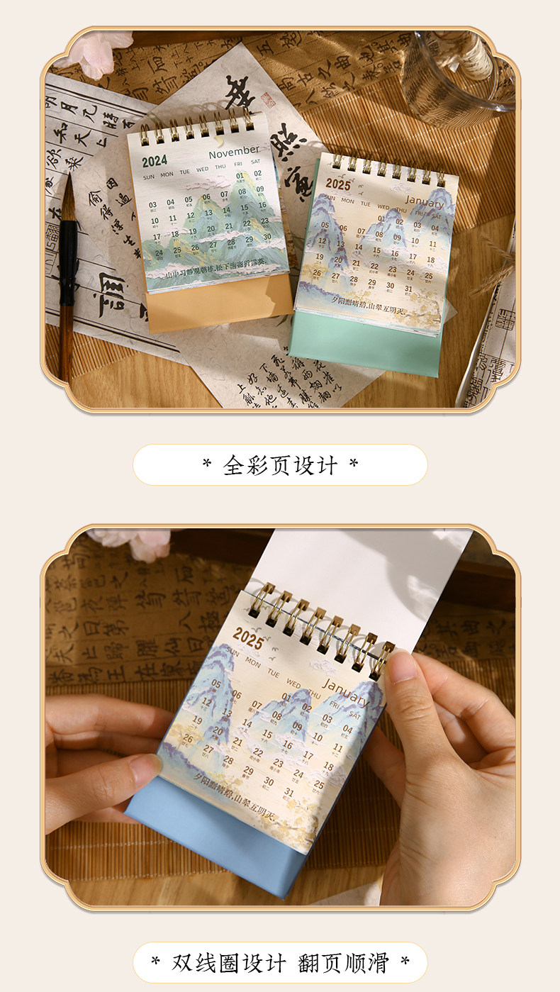 Shan Ye Wan Li Mini Desk Calendar, Vintage-Style Planner, Mini Calendar for Planning and Scheduling, Monthly Calendar, Office Desk Decoration