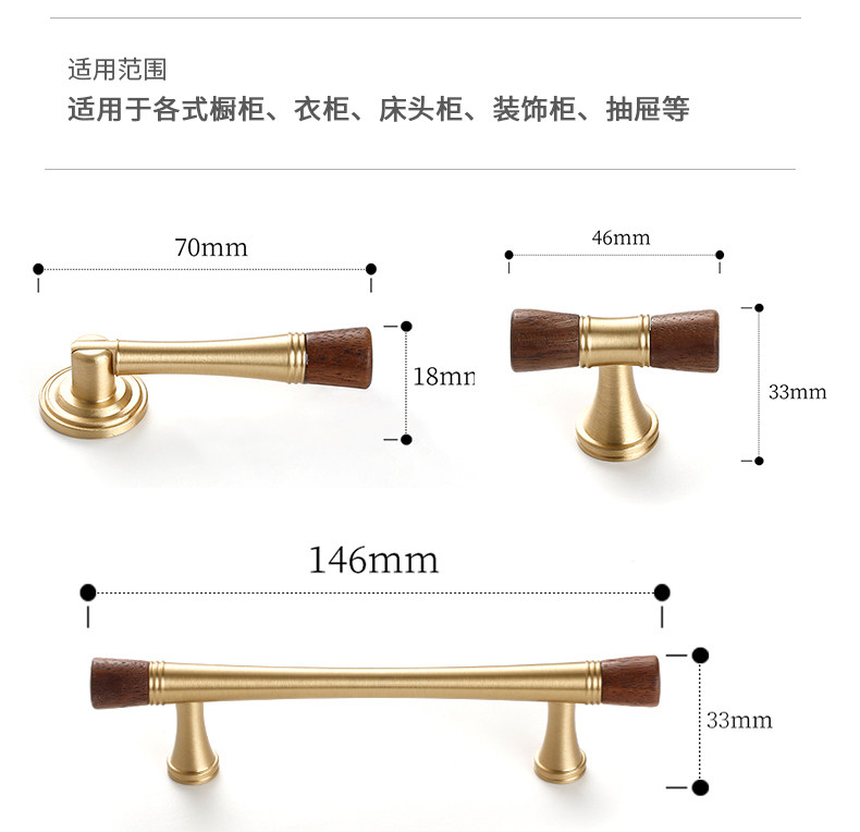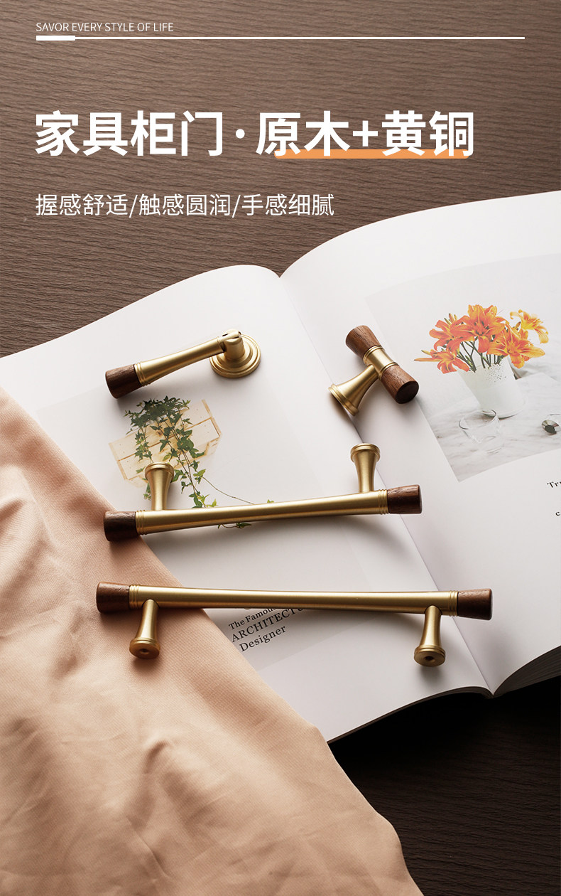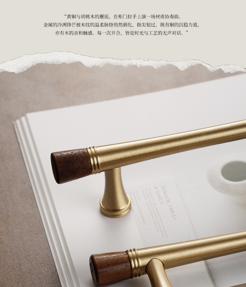 French-Style Vintage Light Luxury Gold Brass Cabinet Door Handle, Antique-Style Solid Wood Cabinet Drawer Wardrobe Door Handle
