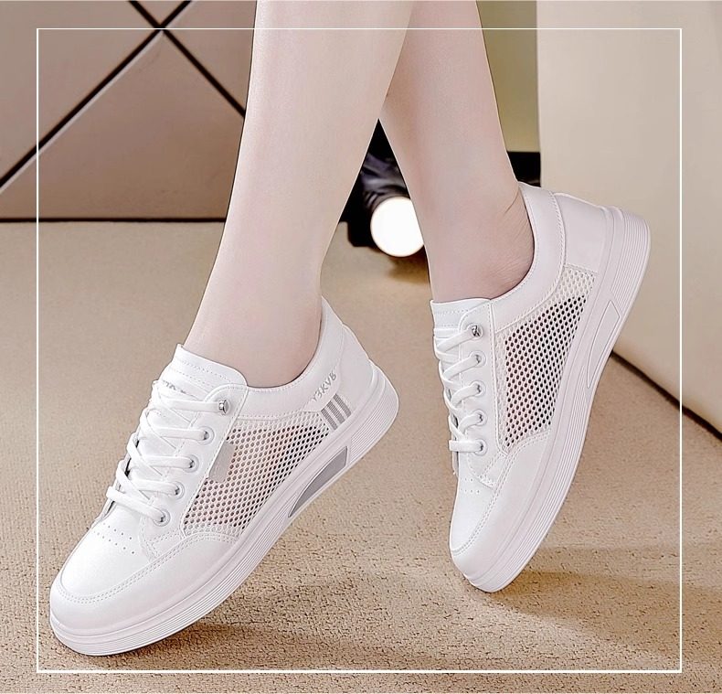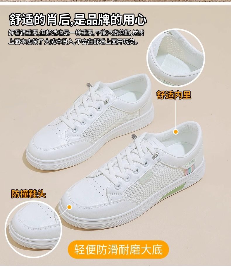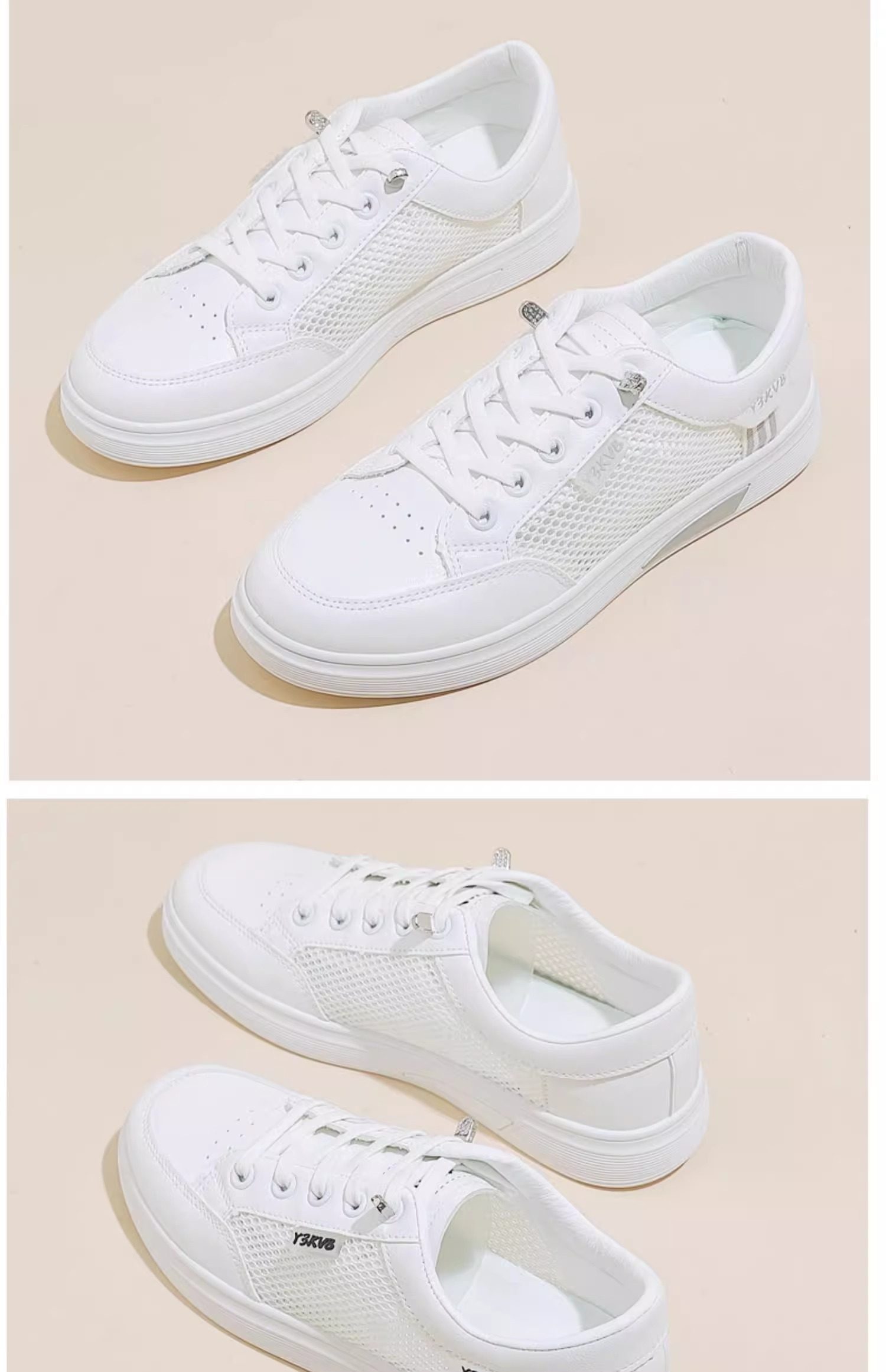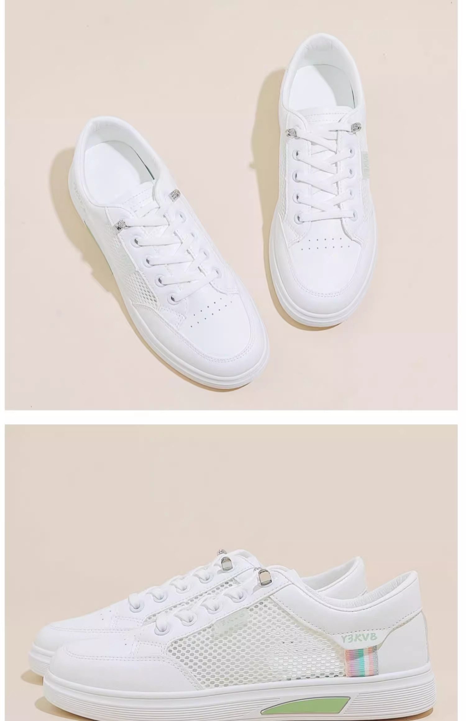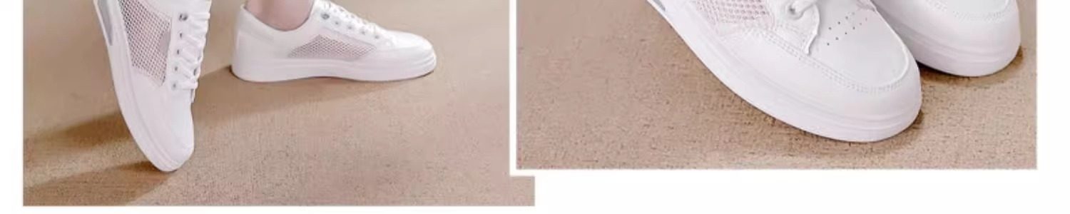 Tmall Genuine Leather White Sneakers for Women 2025 Summer New Mesh Breathable Sports Sneakers Lightweight Casual Shoes for Women