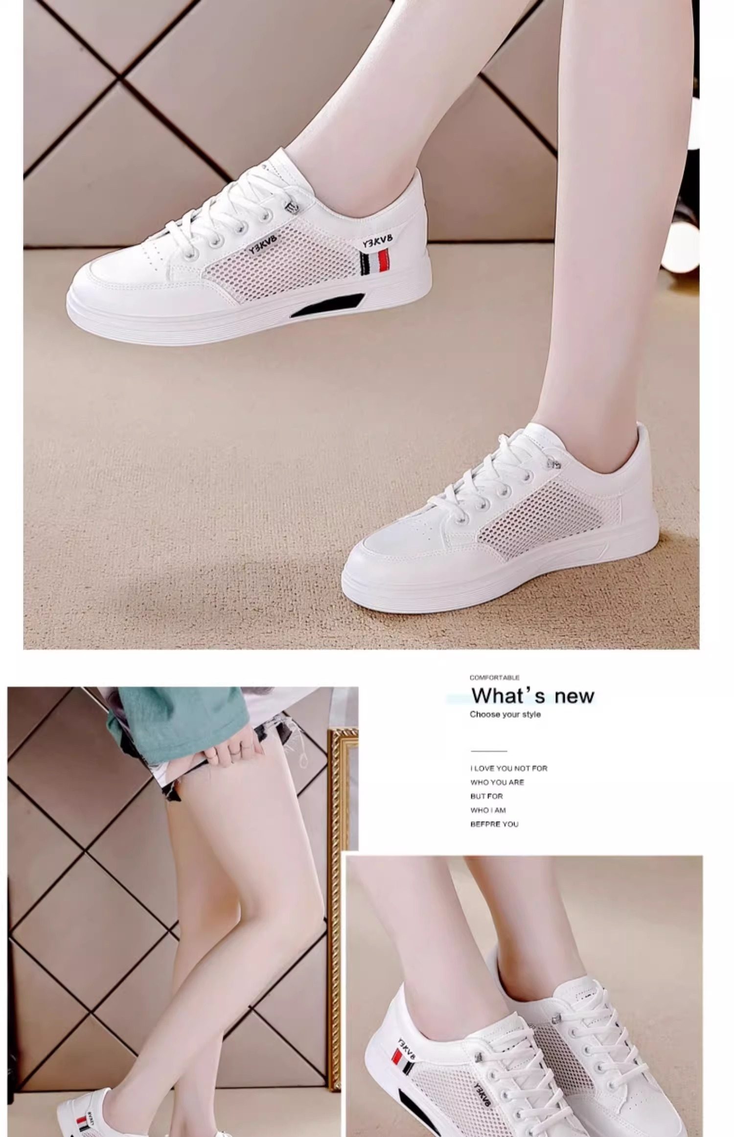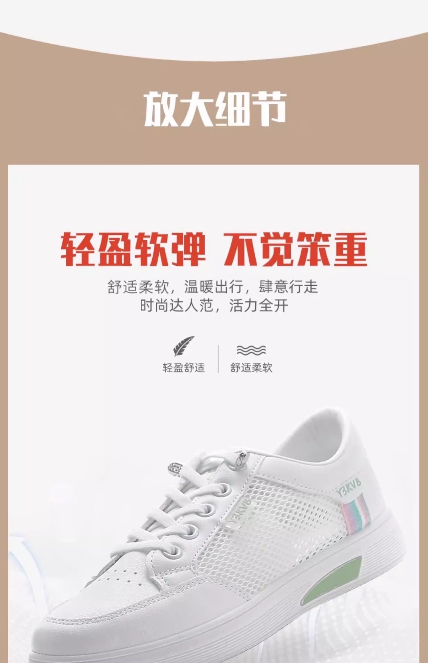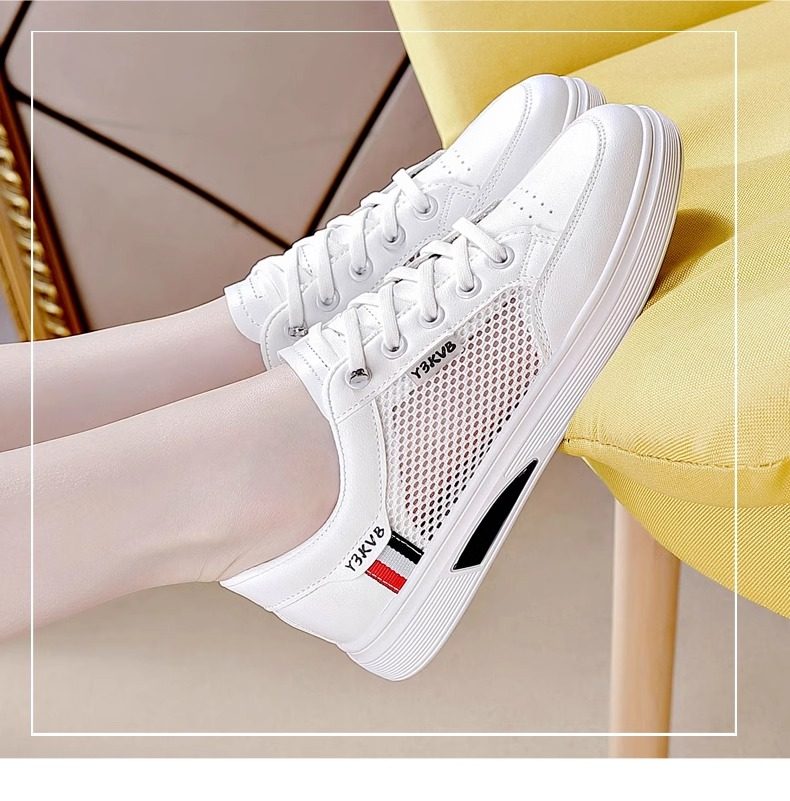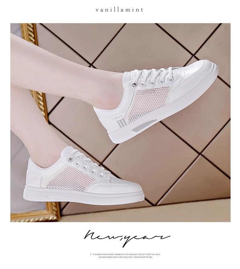 Tmall Genuine Leather White Sneakers for Women 2025 Summer New Mesh Breathable Sports Sneakers Lightweight Casual Shoes for Women