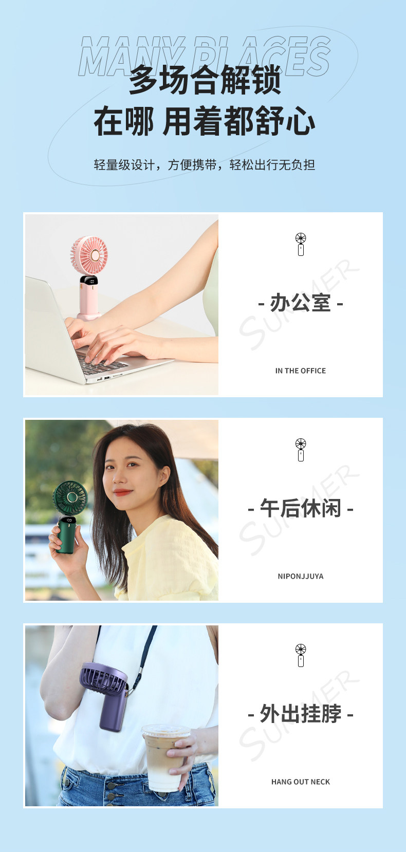 | Color Classification | Cherry Blossom Powder[Intelligent Digital Display ★ 5 Levels Adjustable ★ Desktop + Handheld + Hanging Neck + Aromatherapy],Simple White[Intelligent Digital Display ★ 5 Levels Adjustable ★ Desktop + Handheld + Hanging Neck + Aromatherapy],Violet[Intelligent Digital Display ★ 5 Levels Adjustable ★ Desktop + Handheld + Hanging Neck + Aromatherapy],Cangling Green[Intelligent Digital Display ★ 5 Levels Adjustable ★ Desktop + Handheld + Hanging Neck + Aromatherapy],Light Pea Green[Free 18650 Battery + Data Cable + Base],Deep Sea Blue[Free 18650 Battery + Data Cable + Base],Sand Yellow[Free 18650 Battery + Data Cable + Base],Honey Orange[Free 18650 Battery + Data Cable + Base],Athens Black[Free 18650 Battery + Data Cable + Base],Pearl White[Free 18650 Battery + Data Cable + Base],[Aa Battery Model⭐With Battery⭐Cannot Charge]Fresh Green,[Aa Battery Model⭐With Battery⭐Cannot Charge]Ivory White,[Aa Battery Model⭐With Battery⭐Cannot Charge]Cherry Blossom Powder,[Aa Battery Model⭐Not Equipped with Battery]Color: Random, Single Pack |