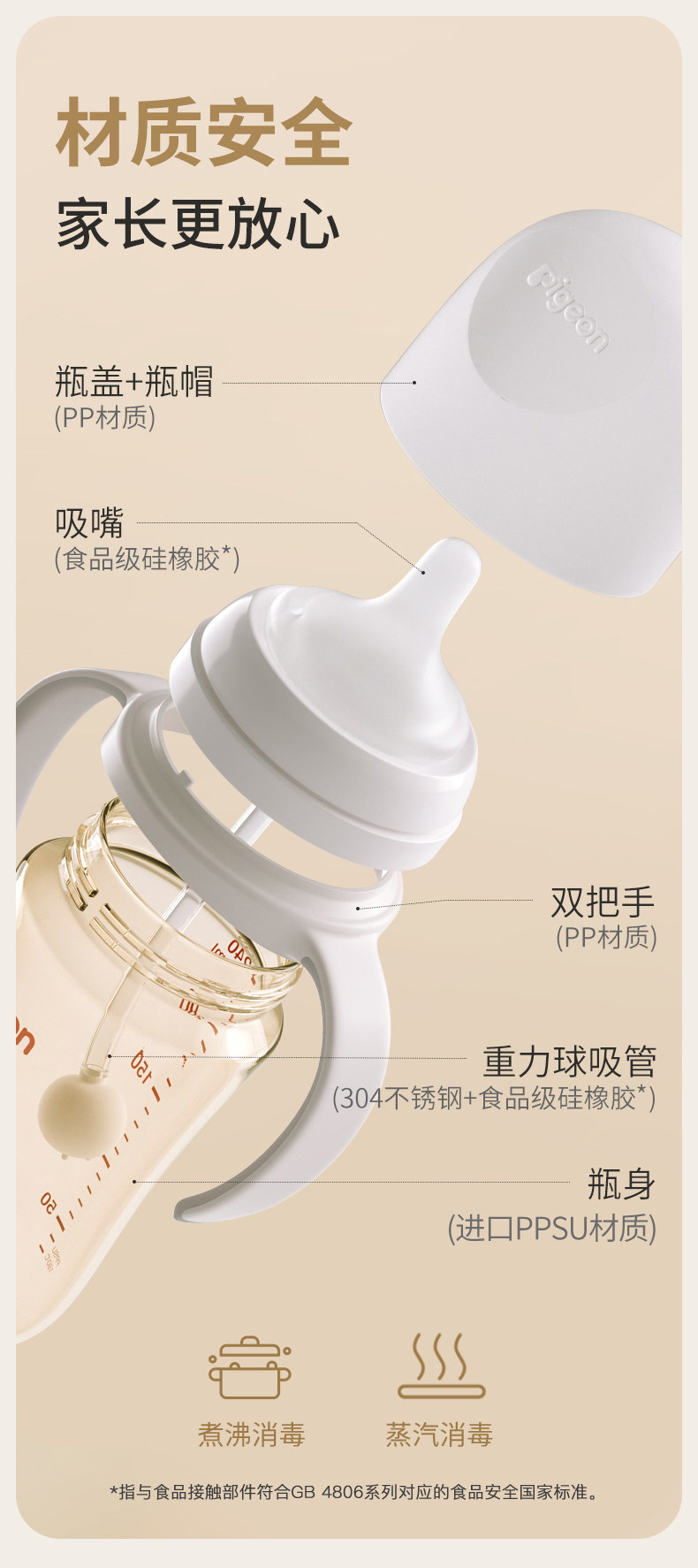 Pigeon Natural Weaning Nipple, Imitation Pacifier, Anti-Colic, Weaning Transition Period, Wide-Caliber Baby Bottle Straw Accessories