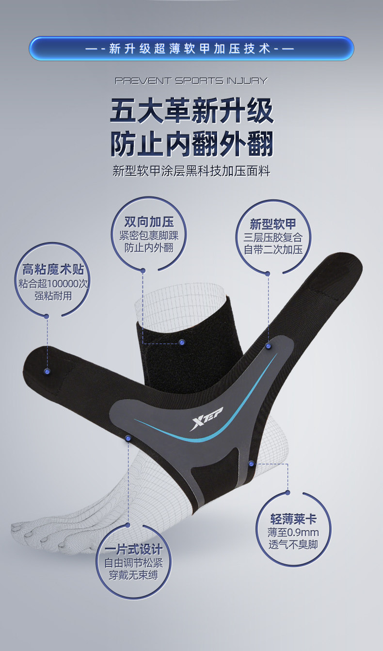 Xtep Ankle Brace for Sprained Ankles, Professional Protective Gear for Basketball and Running, Ankle Sprain Recovery Joint Protector