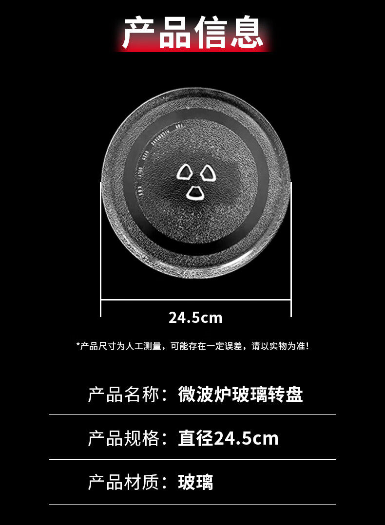 Suitable for Midea Galanz Microwave Oven Glass Turntable 24.5cm Y Bottom Heat-Resistant Microwave Oven Tray Heating Plate