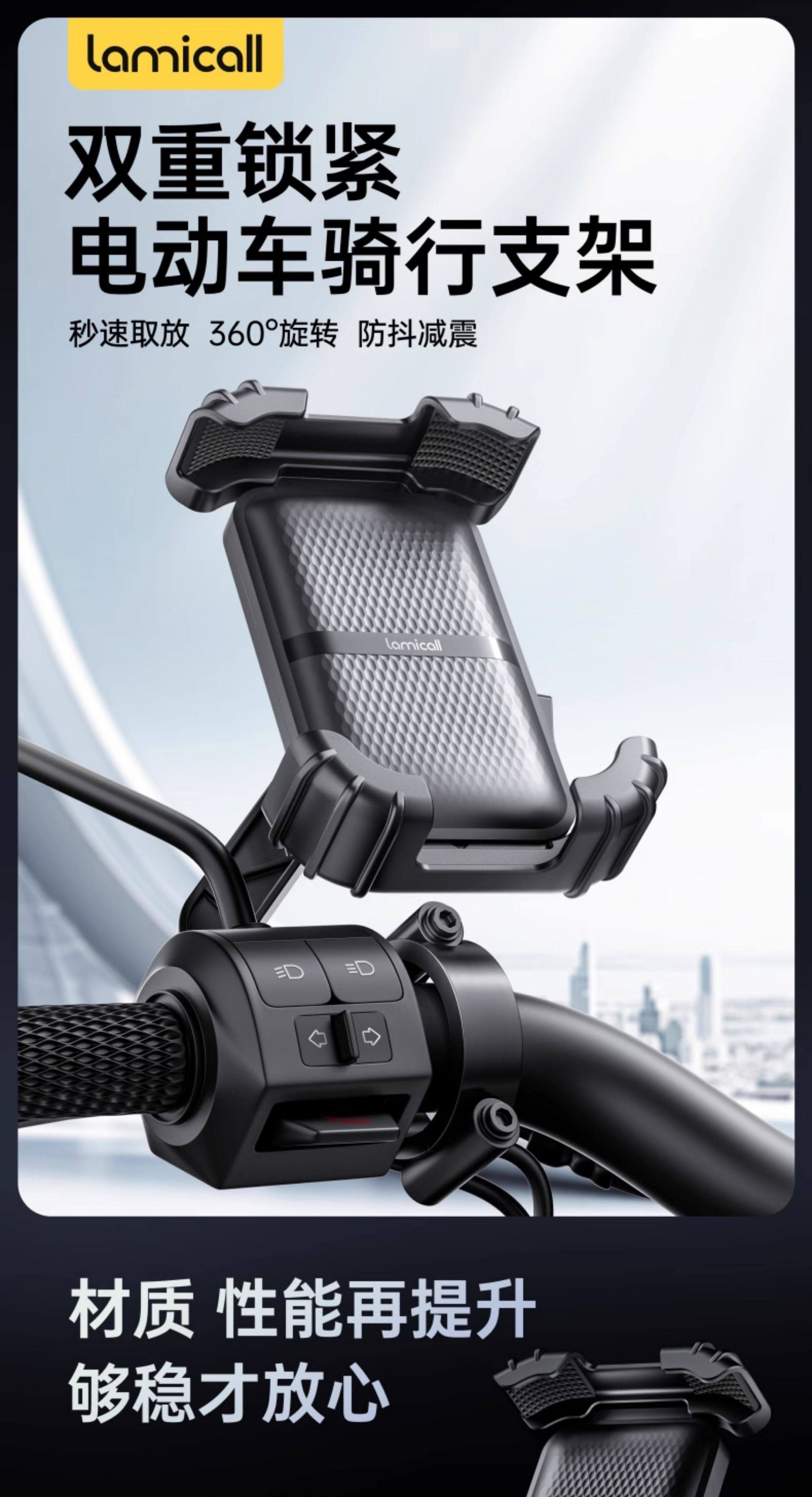 Lamikoo Electric Vehicle Phone Holder, Motorcycle Battery Car Phone Holder, Shockproof and Anti-Shake, Special Holder for Delivery Riders