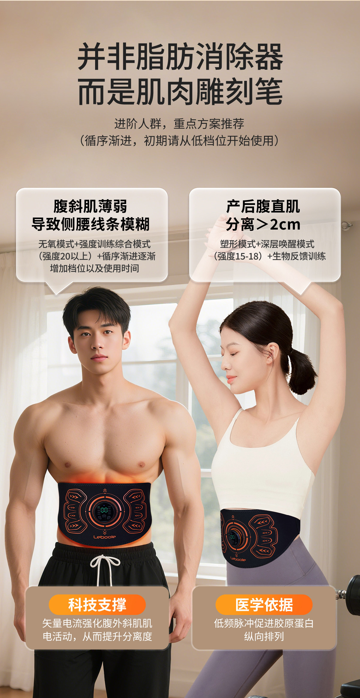 Leboole Abdominal Fat Reduction Device, Slim Belly Fat, Abdominal Muscle Training Patch, Quick Training, Weight Loss, Abdominal Fitness Belt